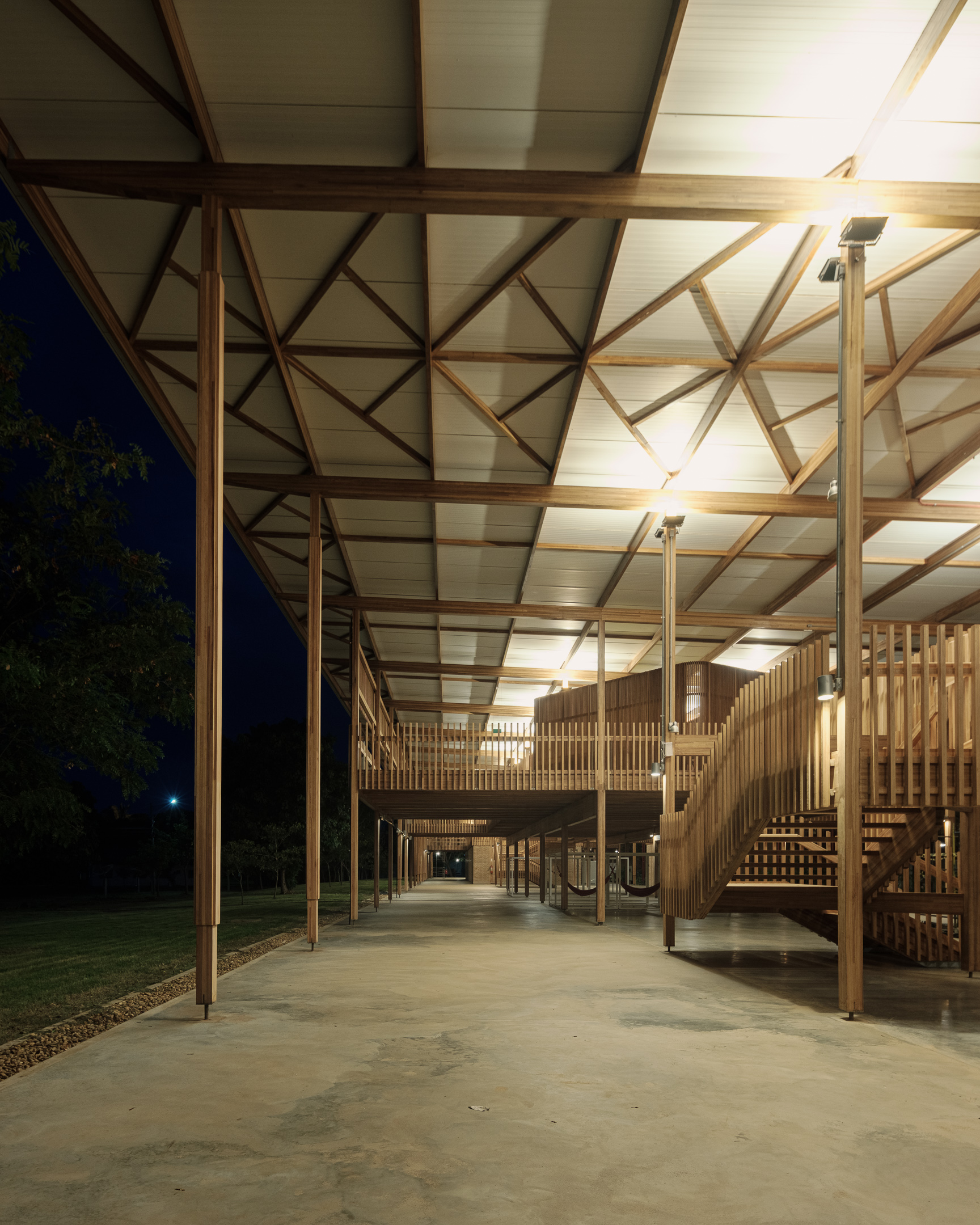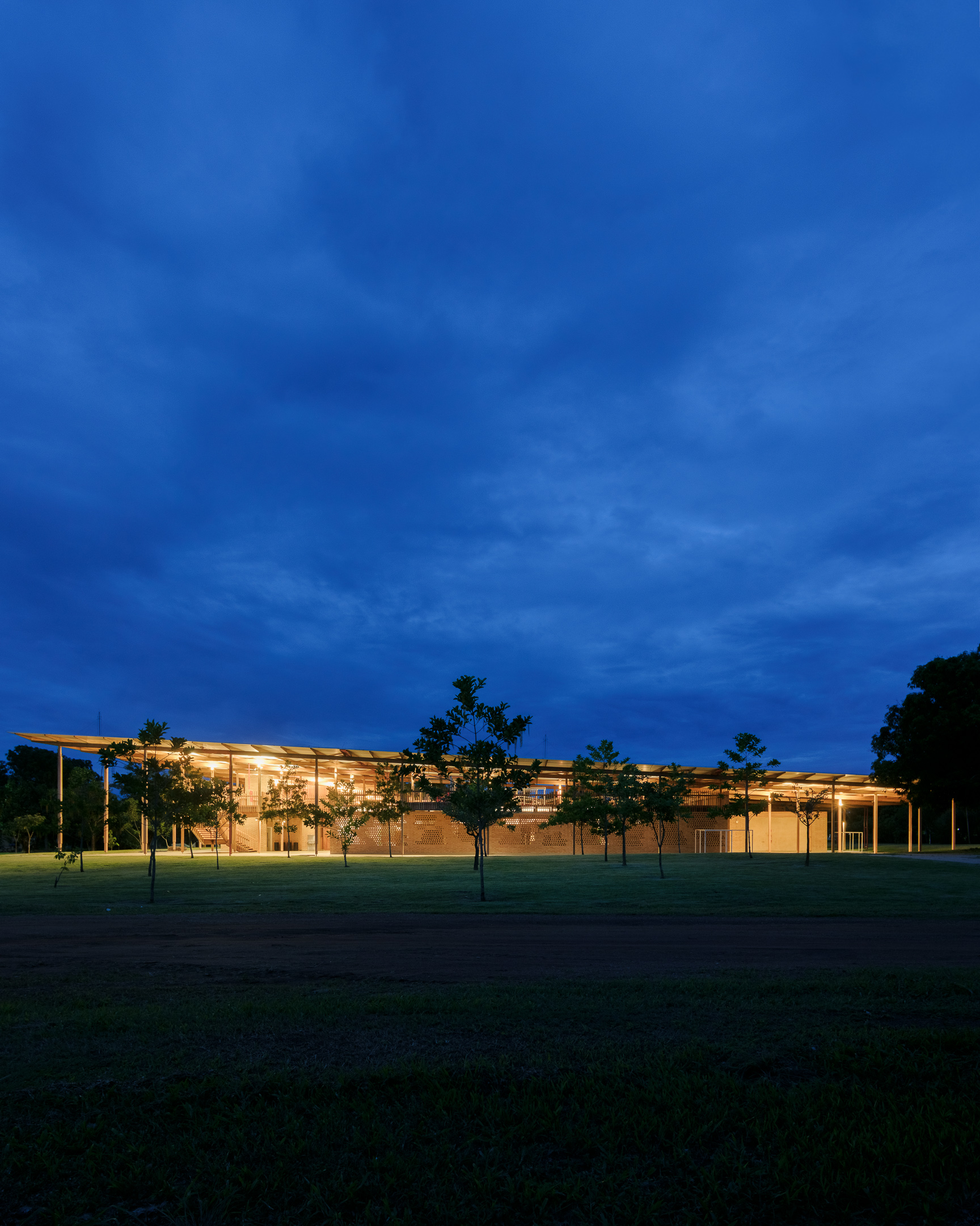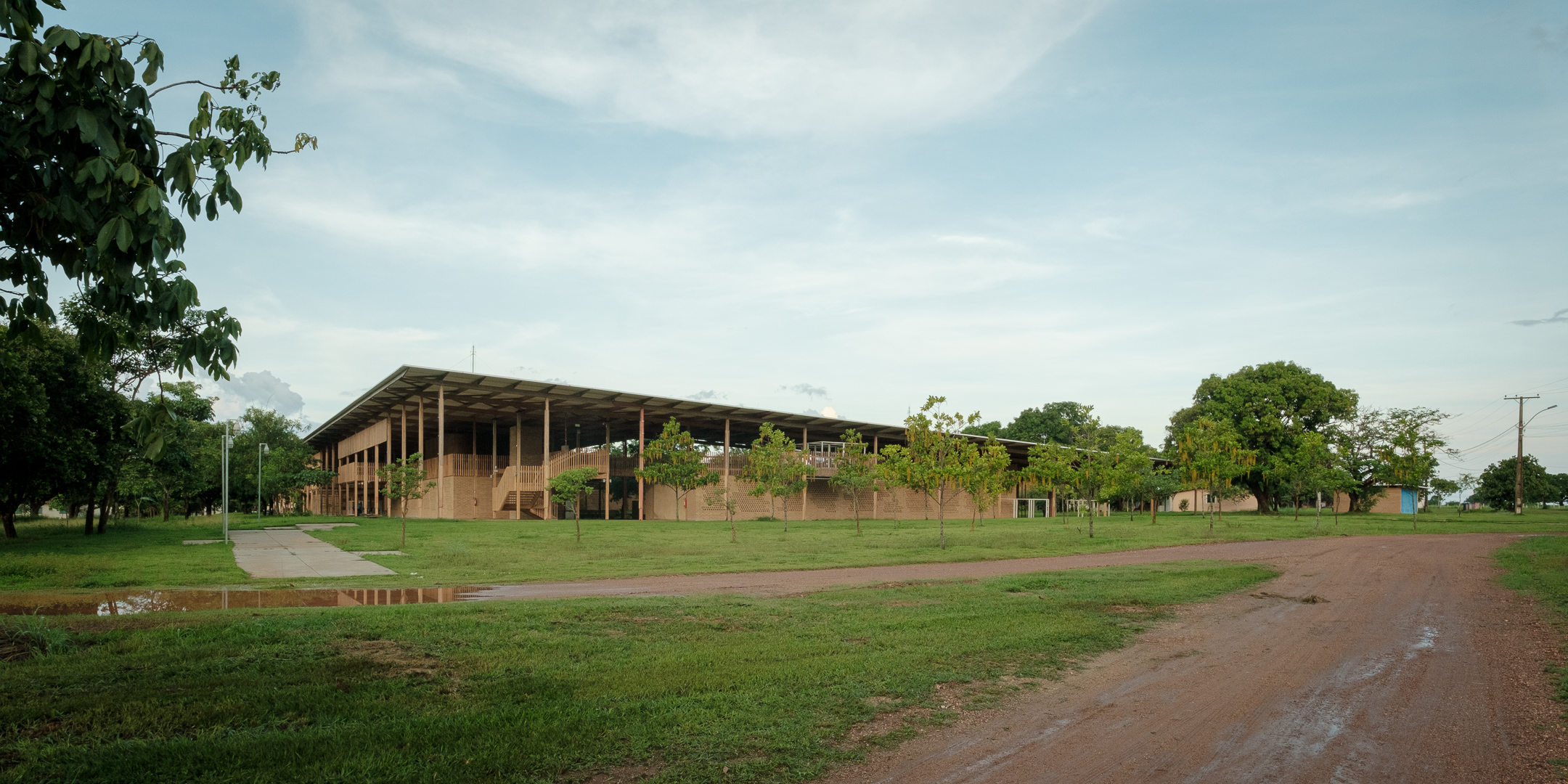In a remote area of Brazil, between the highlands and the Amazon, nearly one thousand students and employees reside during the school year. Two children housing buildings (for girls and boys, featuring over 400 beds each), reside und a sloping roof supported by the largest wooden building in Latin-America.