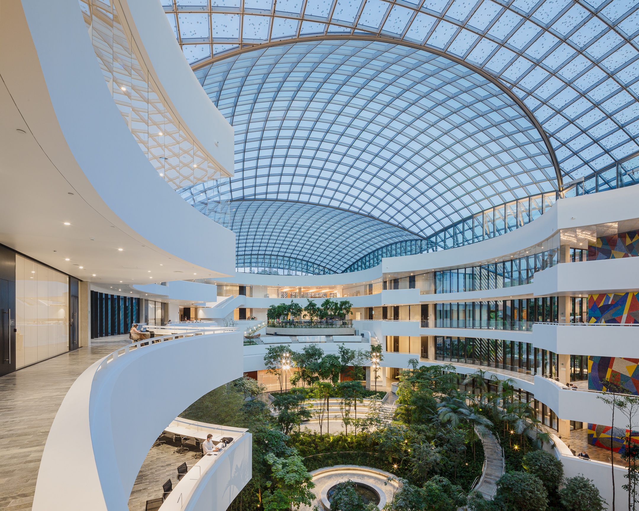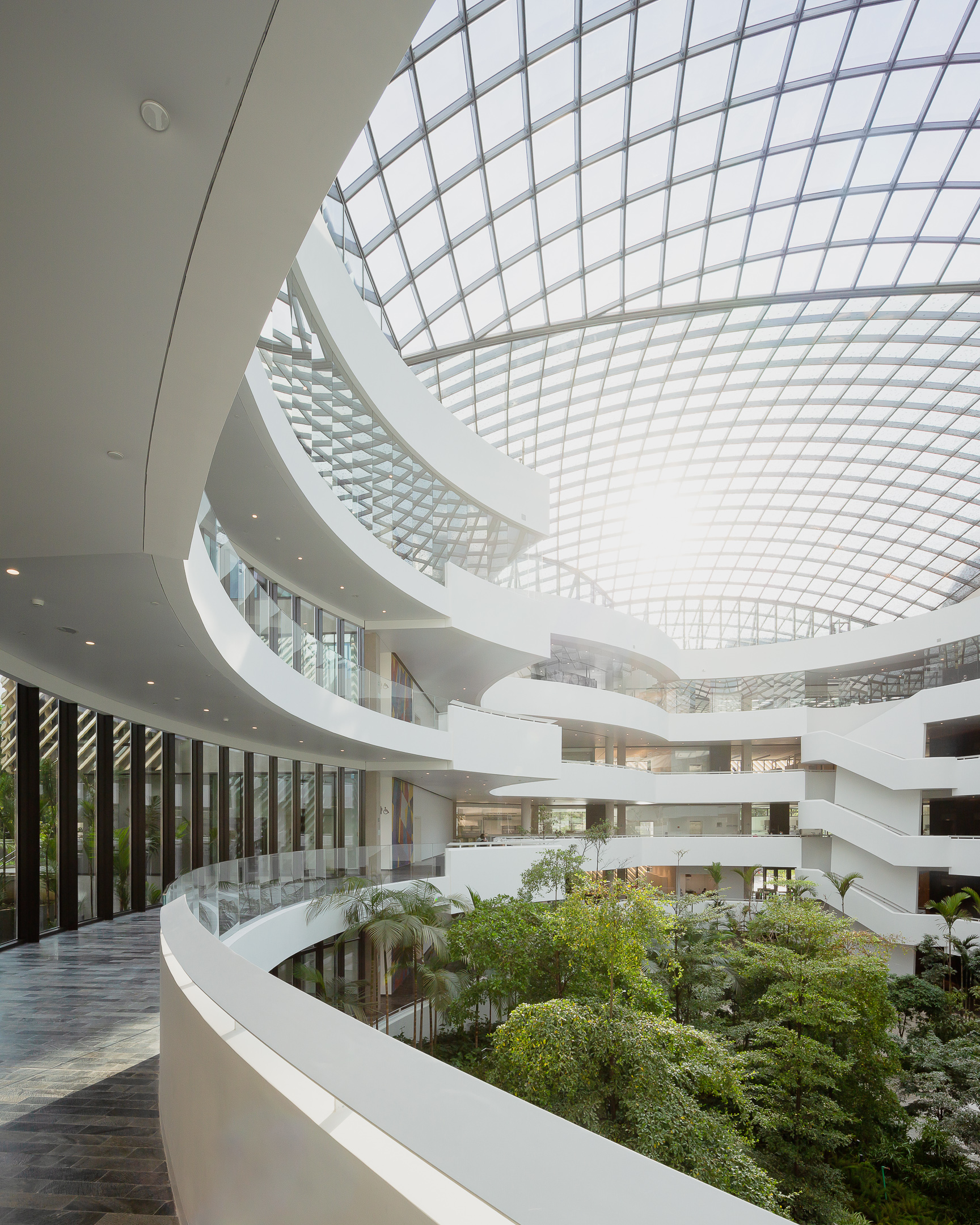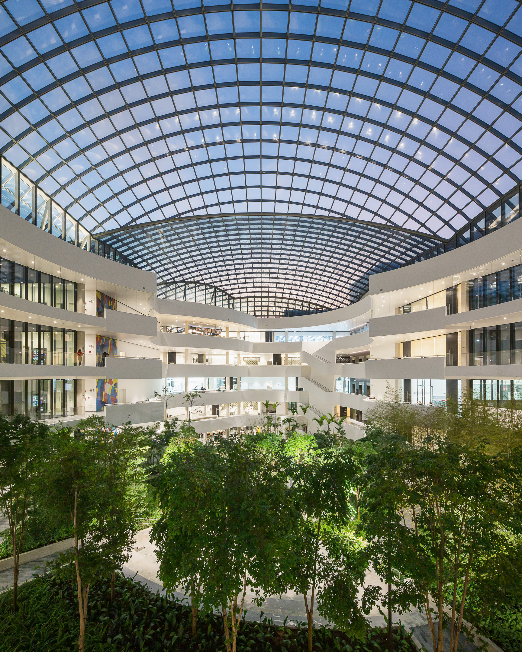 The Albert Einstein Education and Research Center (AEERC) is conceived as an urban oasis, with an imbued sense of calmness that offers a counterpoint to the activity of the city. Organized around a vaulted, skylit atrium garden, the building’s laboratory spaces, classrooms, and communal areas are interwoven with nature and embody the unique character of the institution.