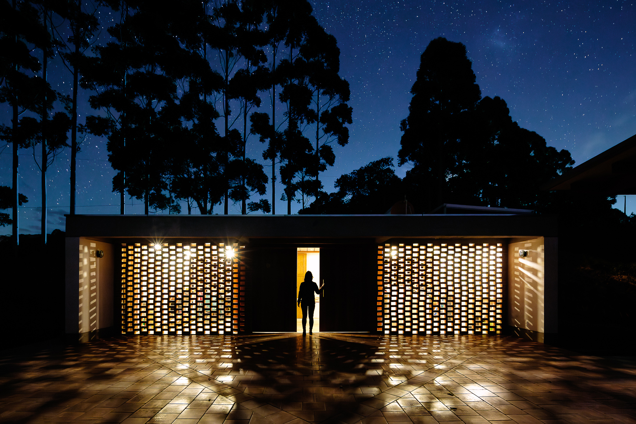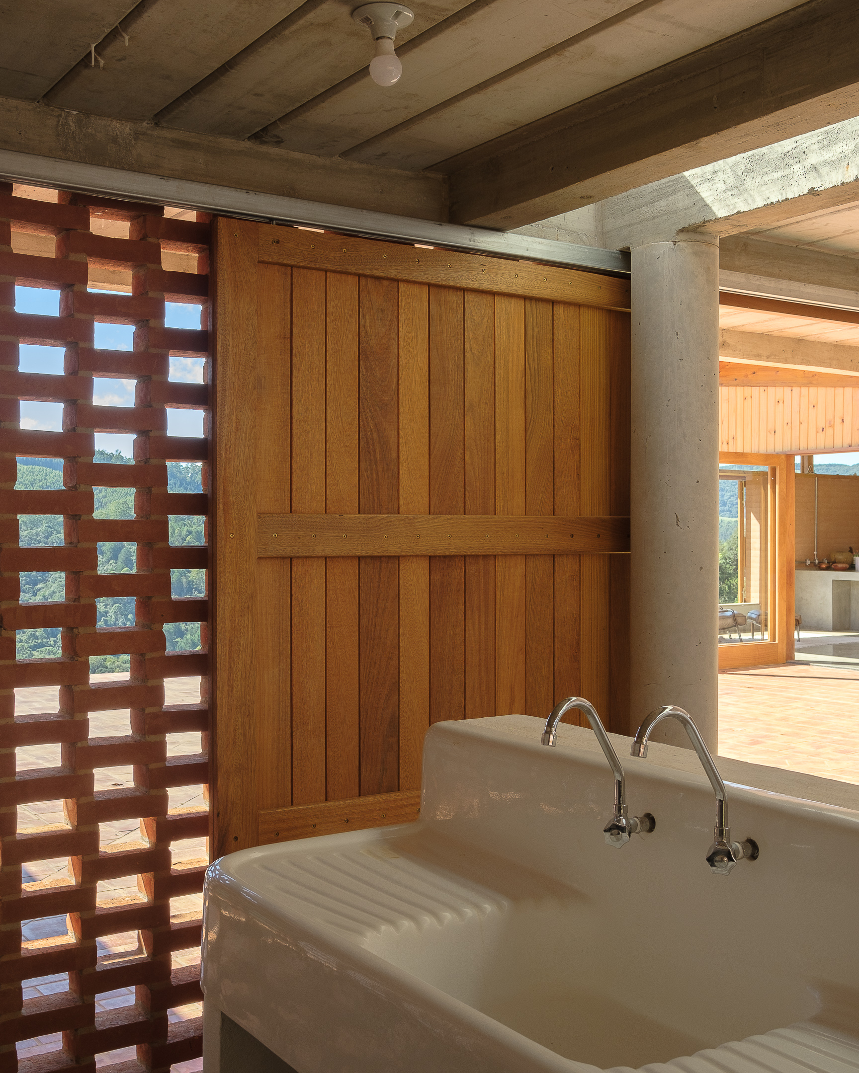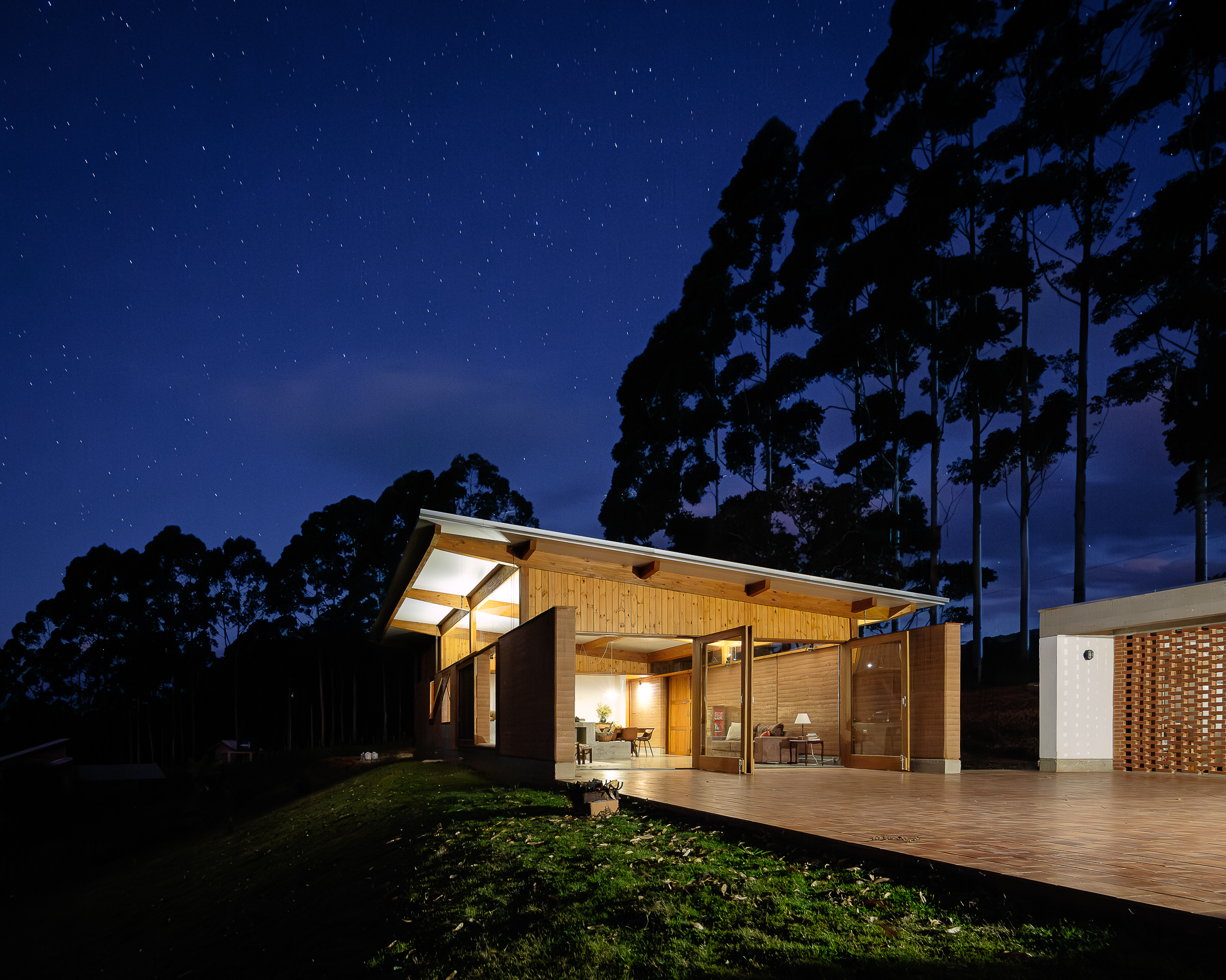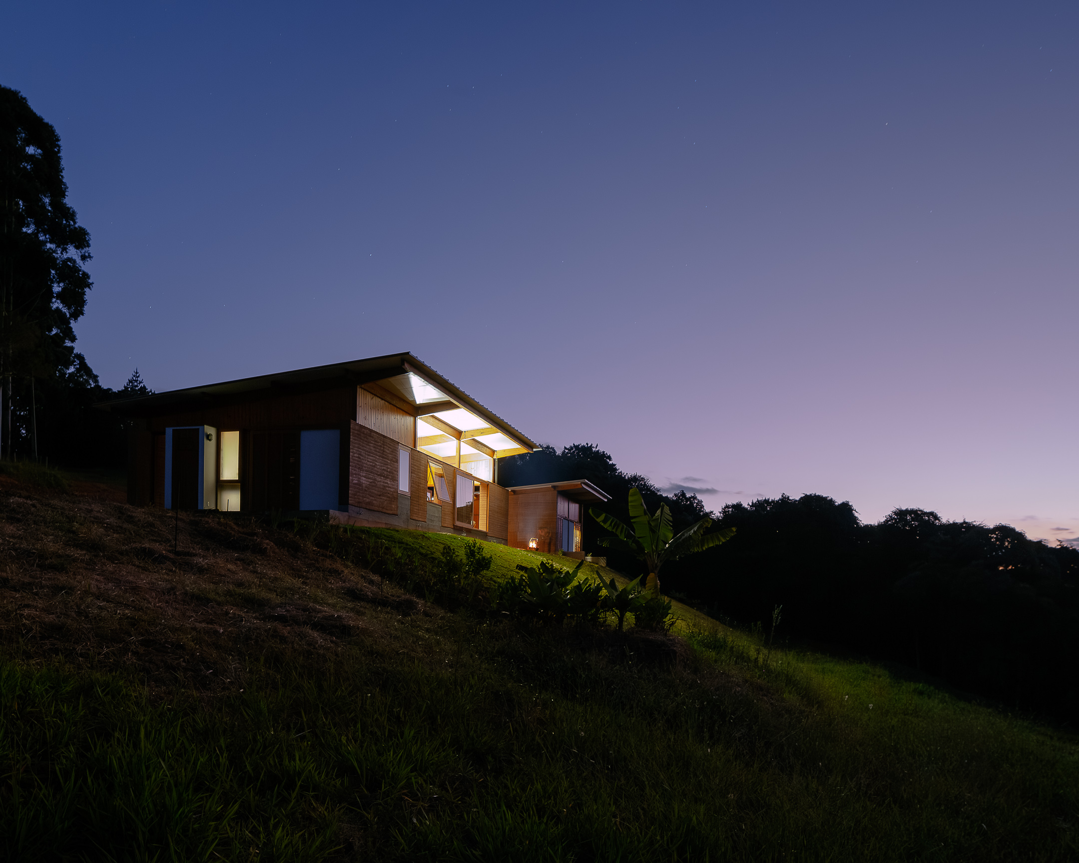 Overlooking the Mantiqueira mountains, a house built with rammed earth and local materials.
