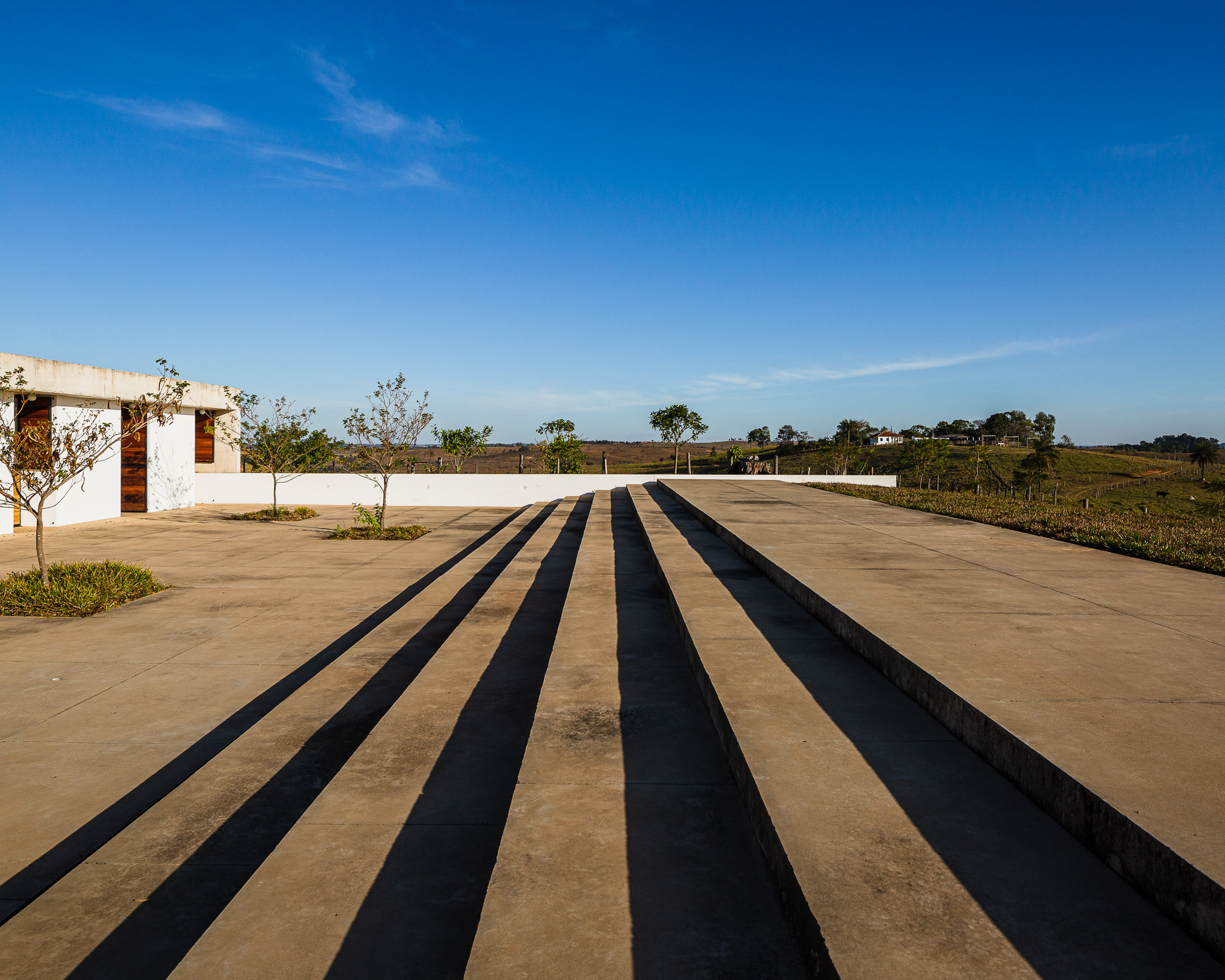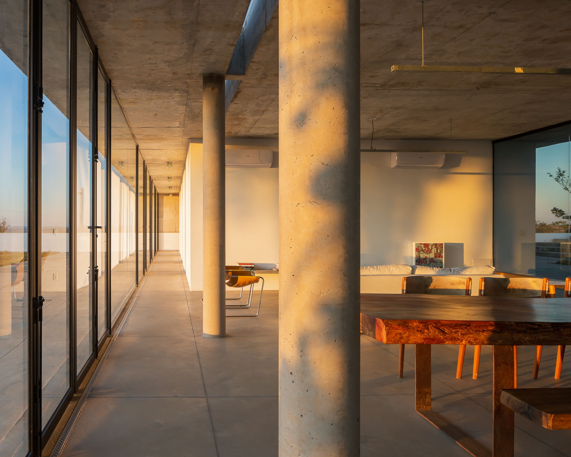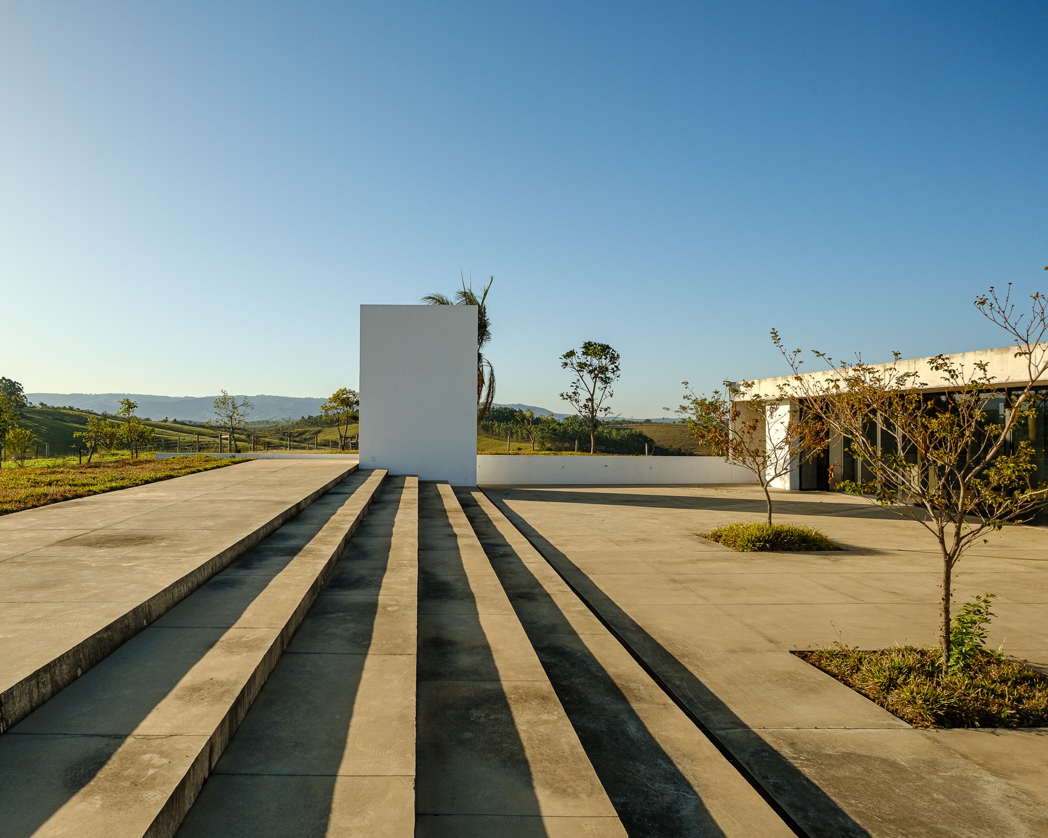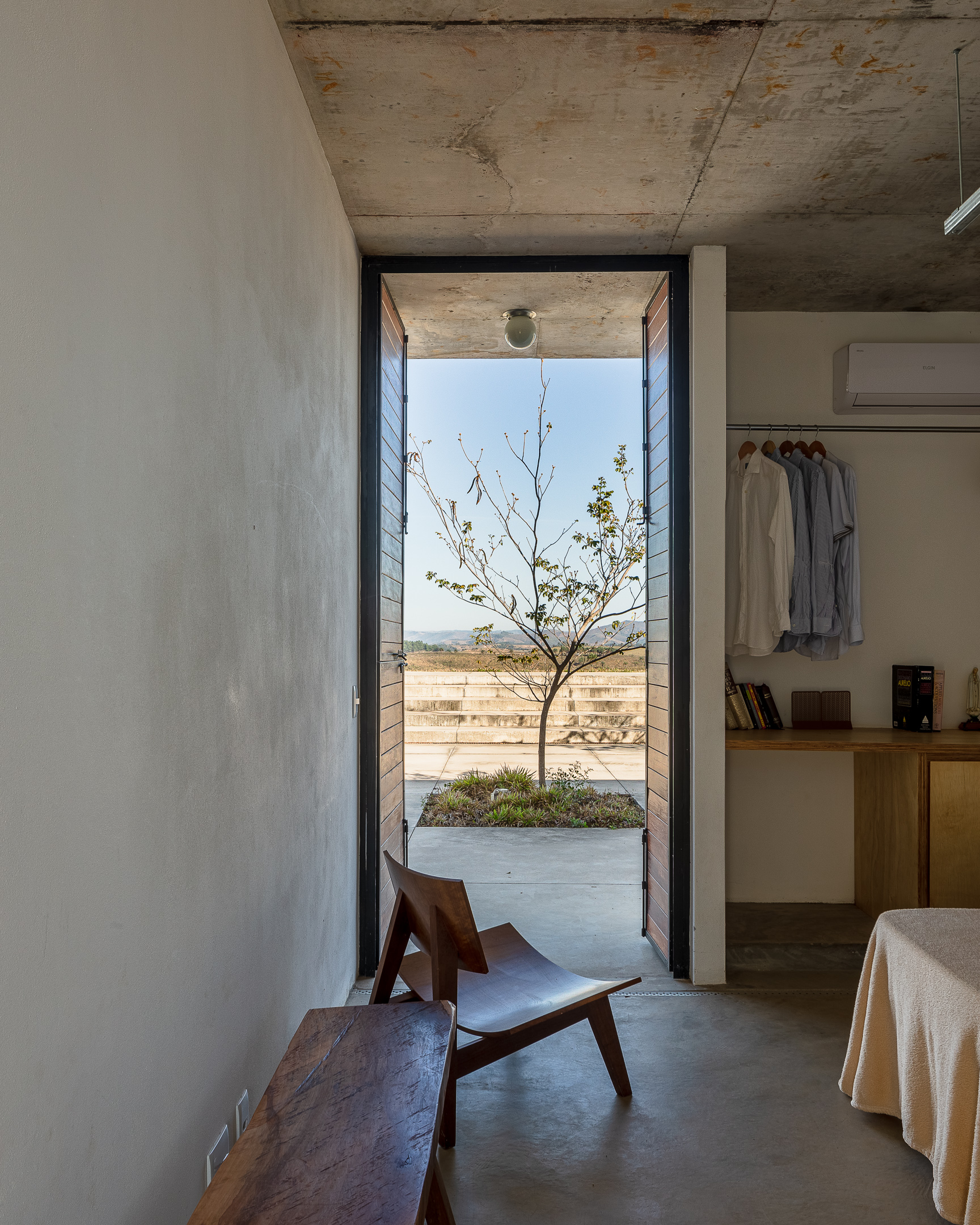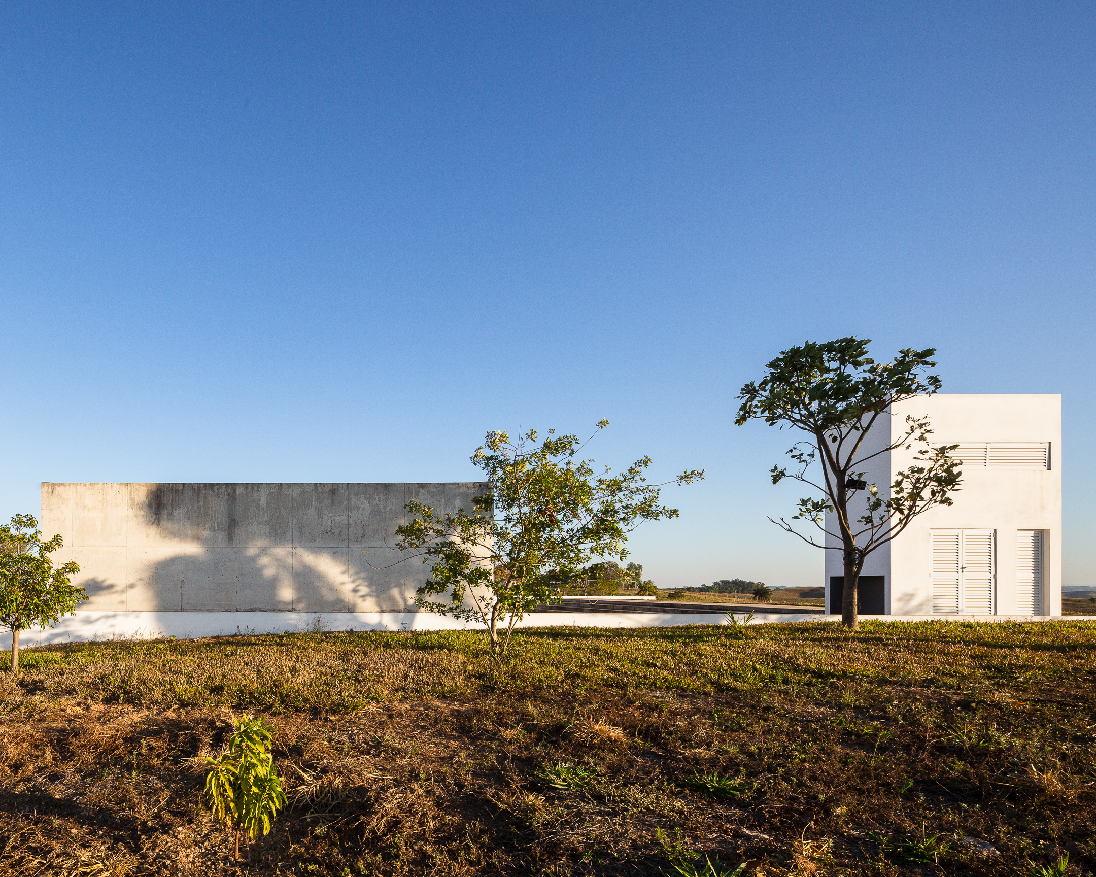 In the deep country side of brazilian state of Minas Gerais, this home in concrete and glass emerges from a hilltop. Featuring sweeping views of grasslands, meadows, and a patio for sky gazing, this house mediates the landscape through architecture.