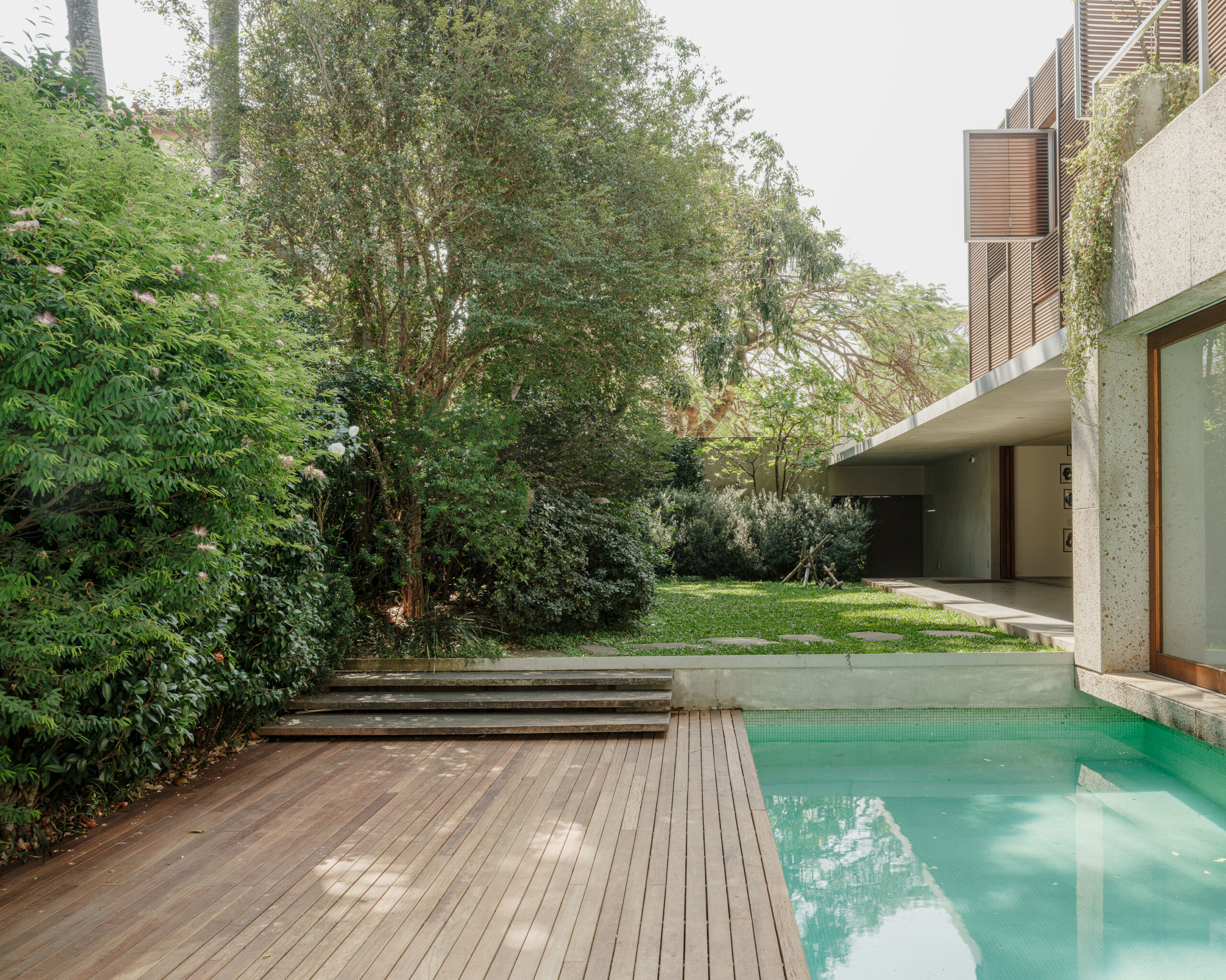 The Casa Marrom (“Brown House”), designed in 2004, initially featured a “tropical garden” created by Rodrigo Oliveira. Twenty years later, the new residents requested the landscaper to redesign the garden, this time incorporating temperate-climate species. I was commissioned to capture this new phase of the landscaping, framed by Isay Weinfeld’s architecture.