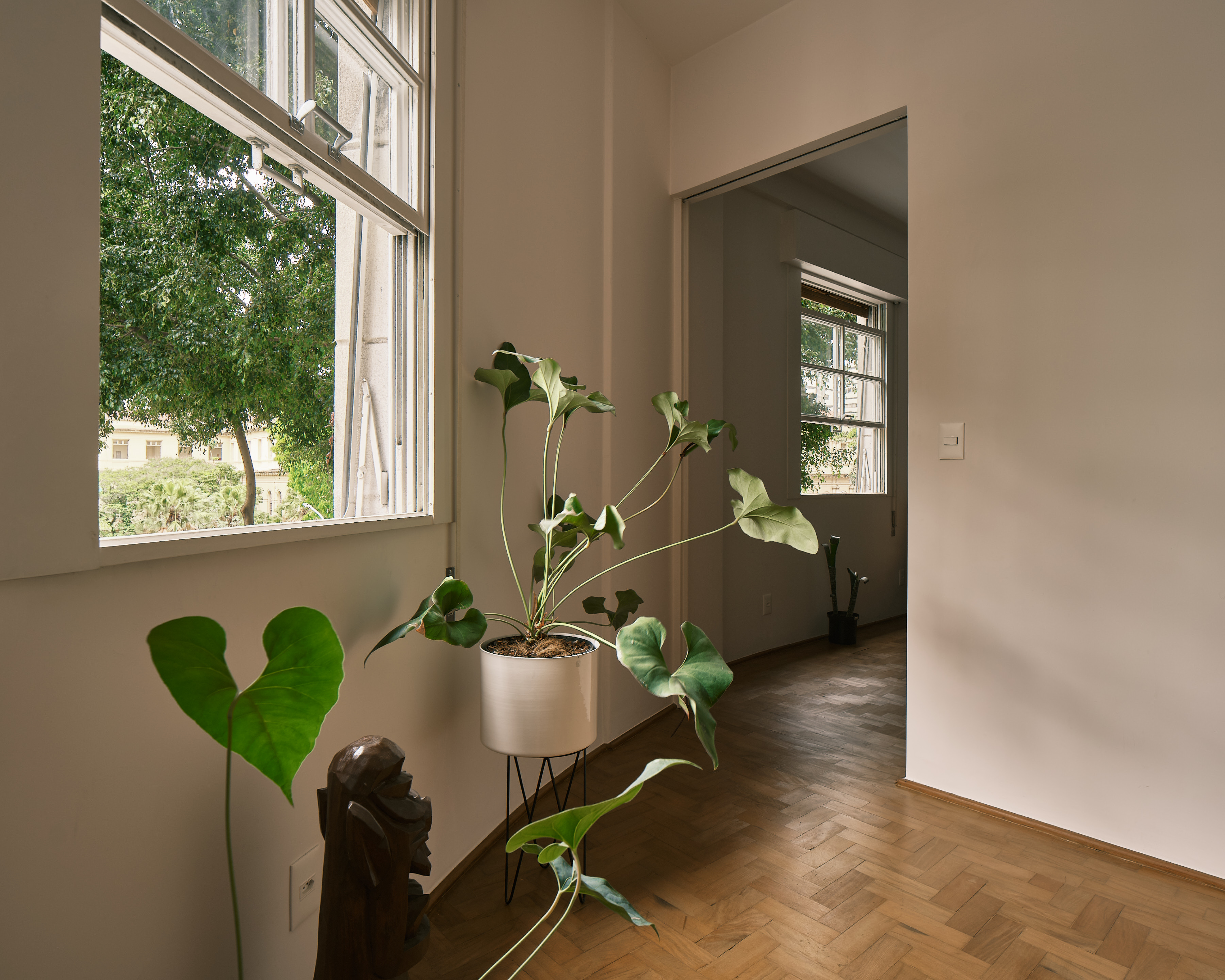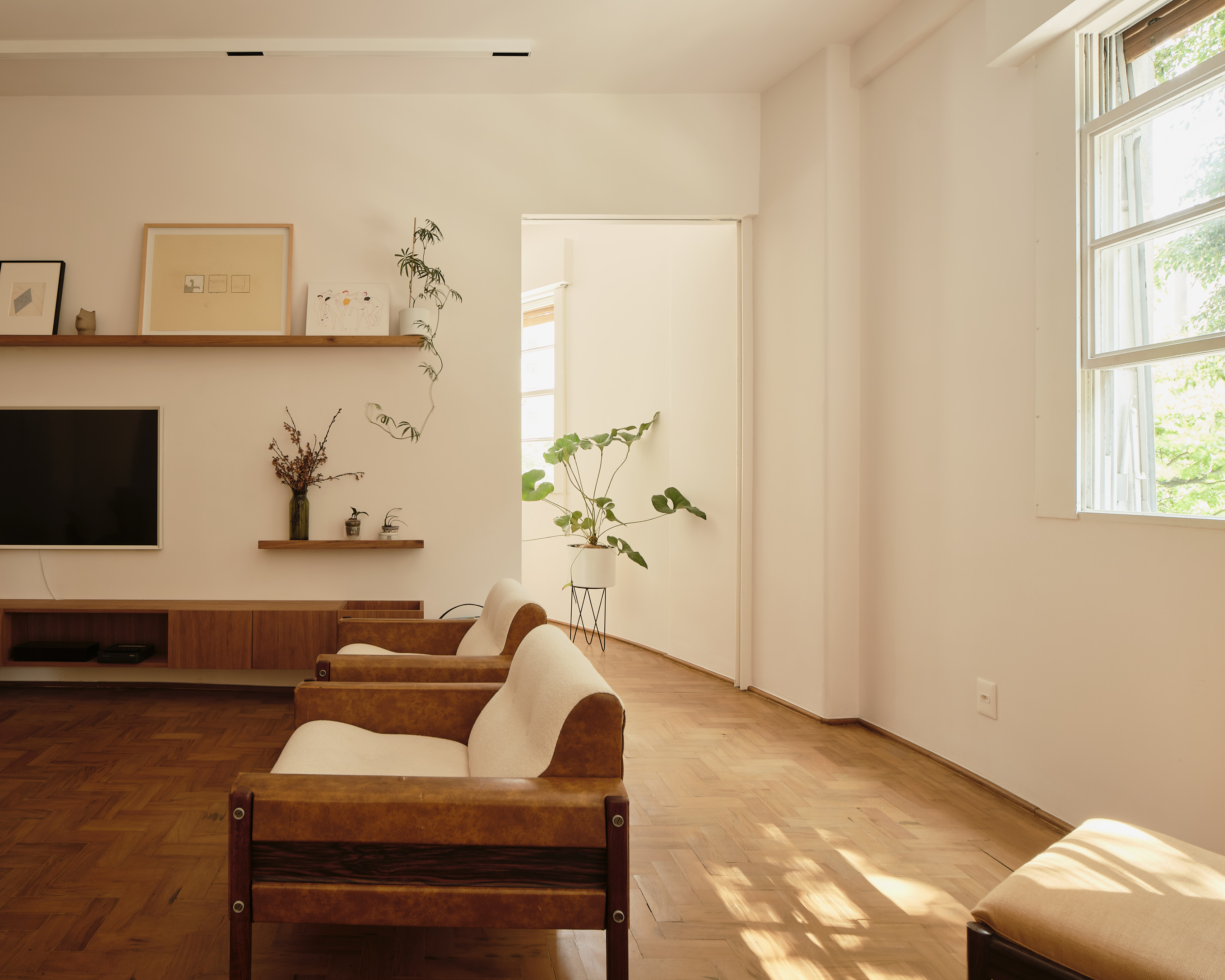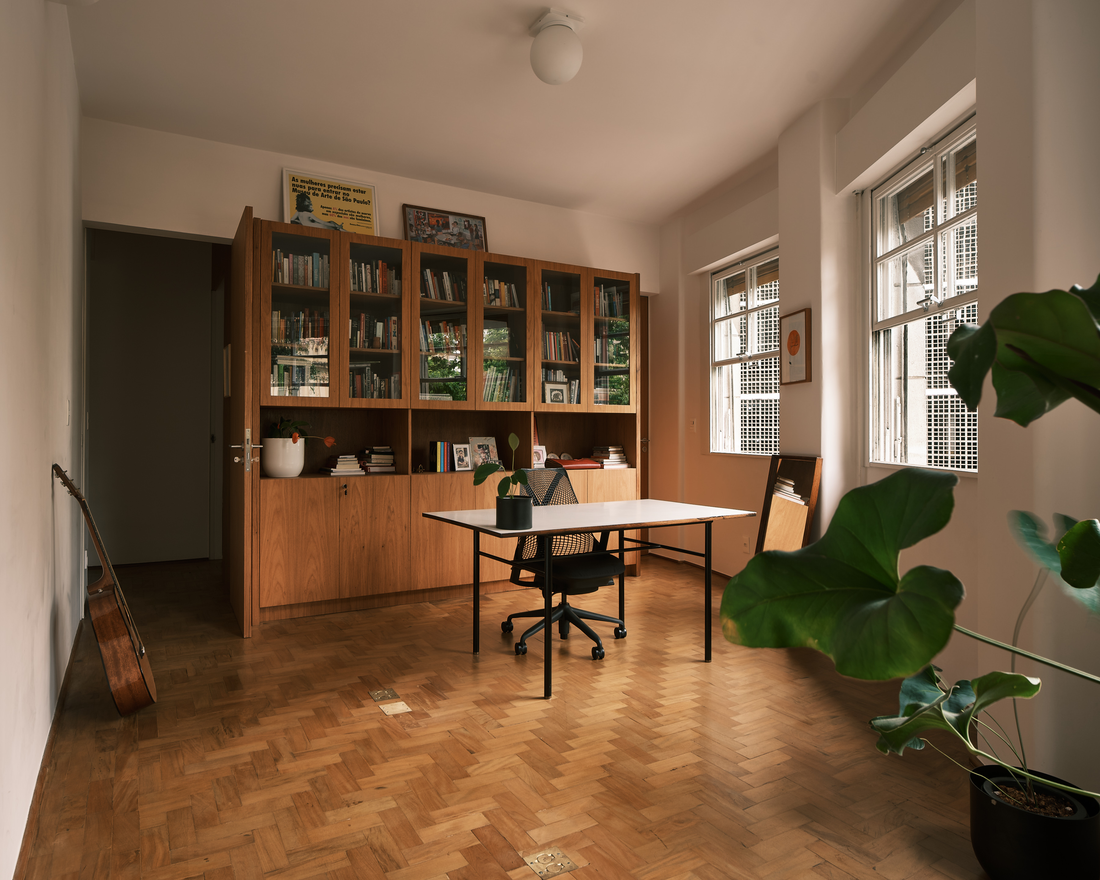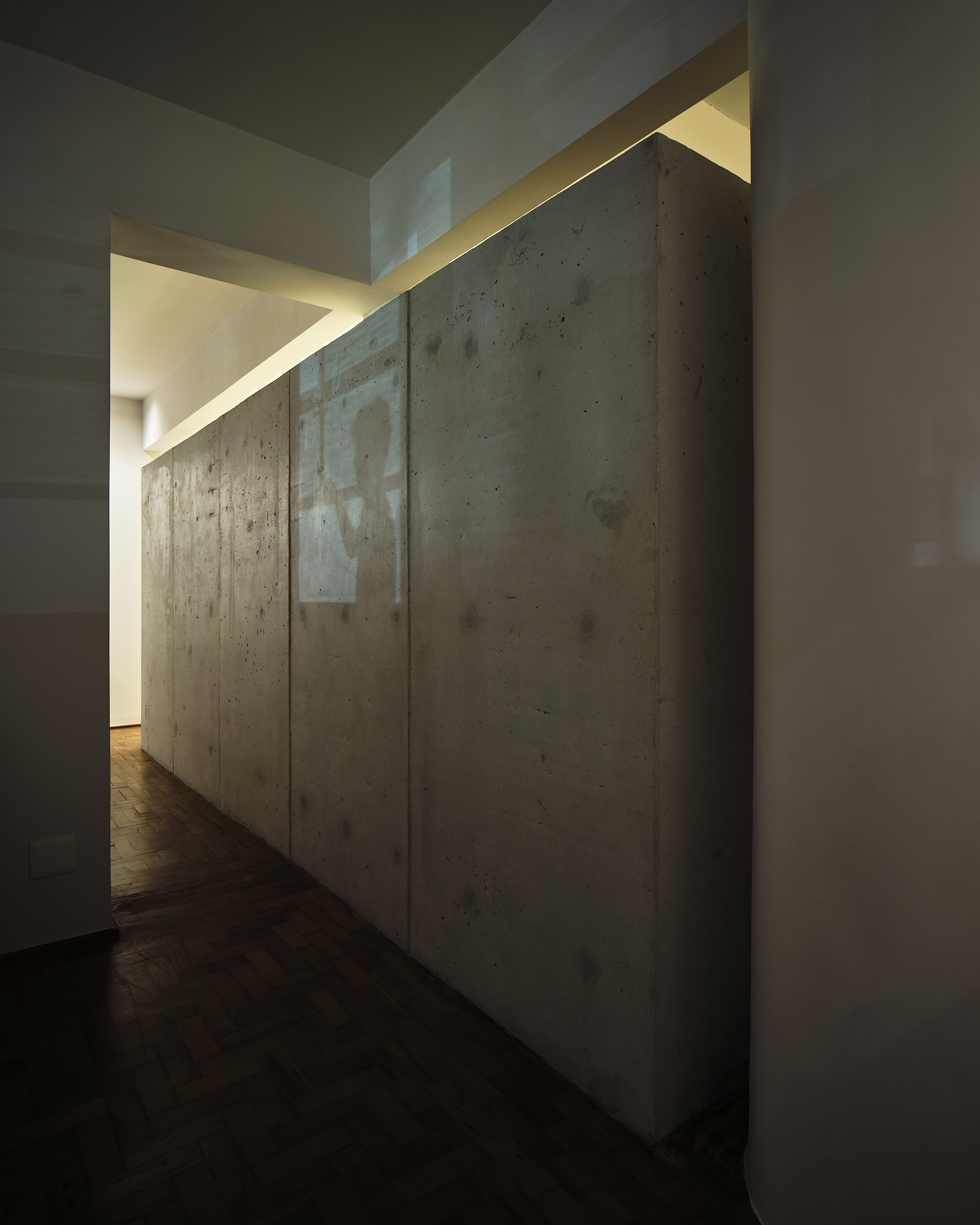 Renovation of a 1940s apartment in downtown São Paulo, featuring a new spatial arrangments with concrete and wooden panels.