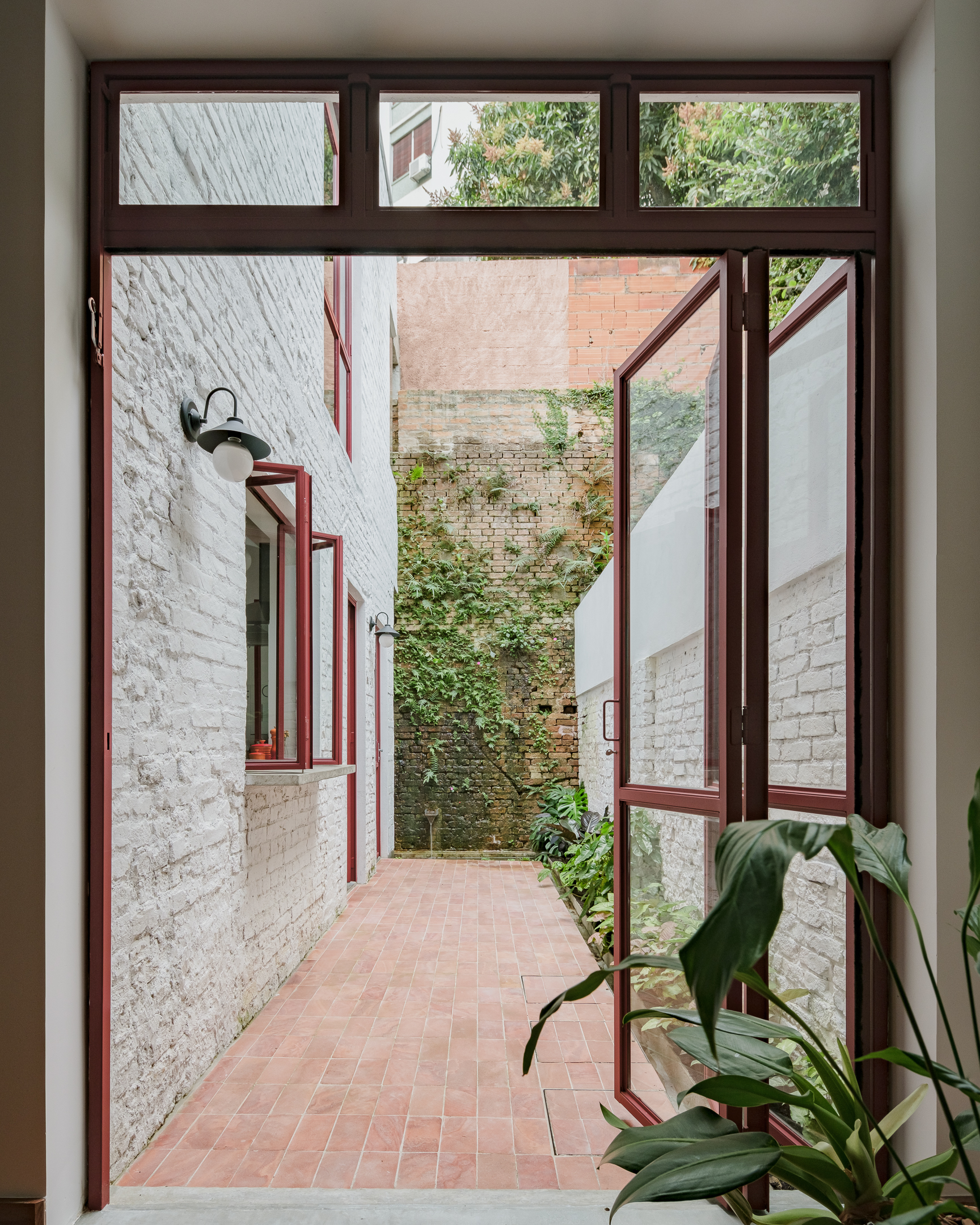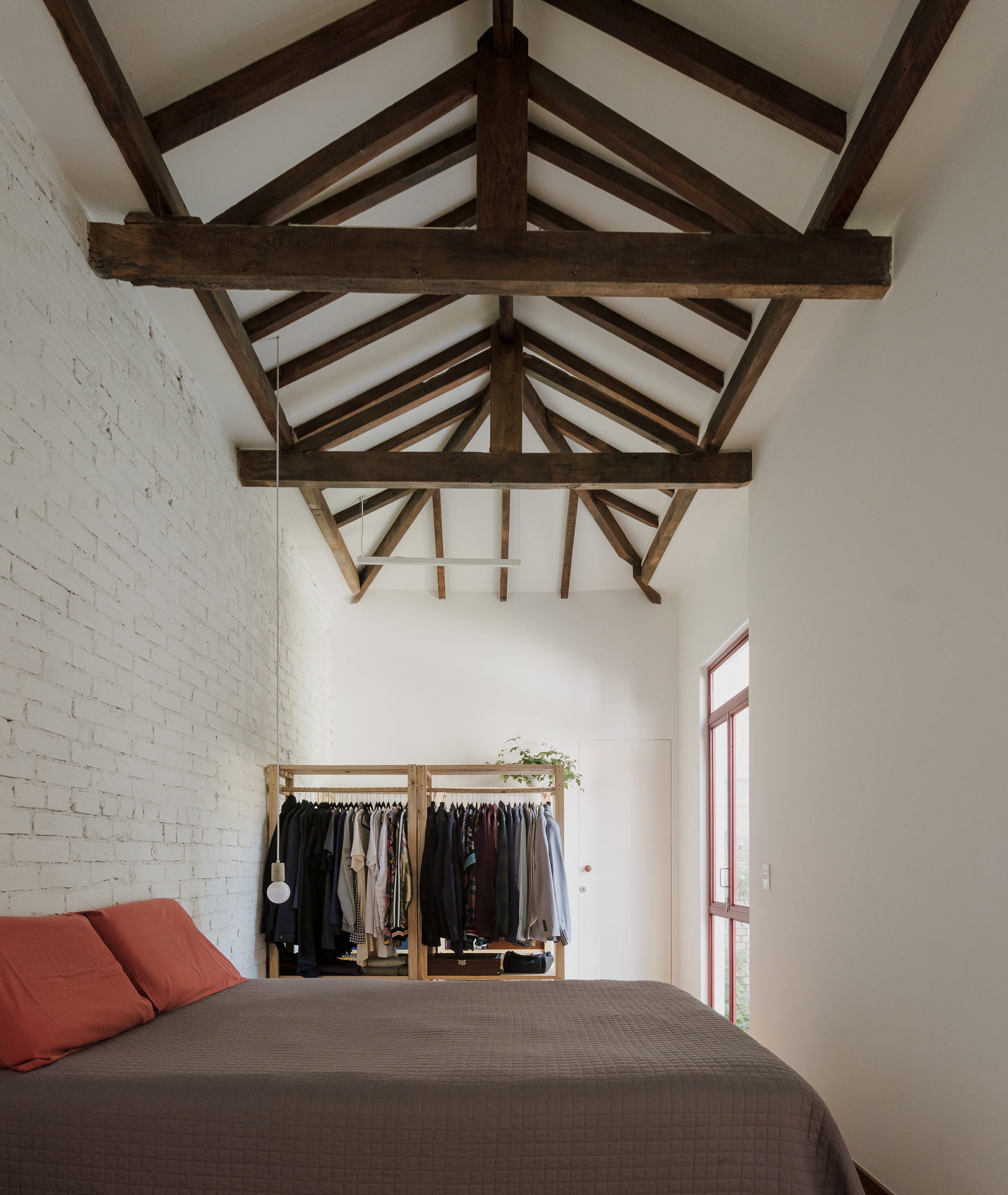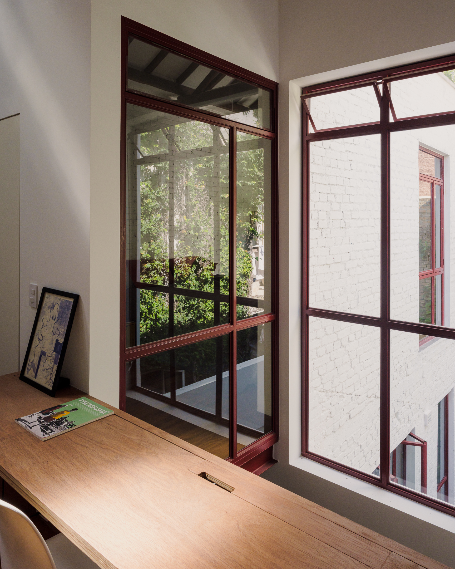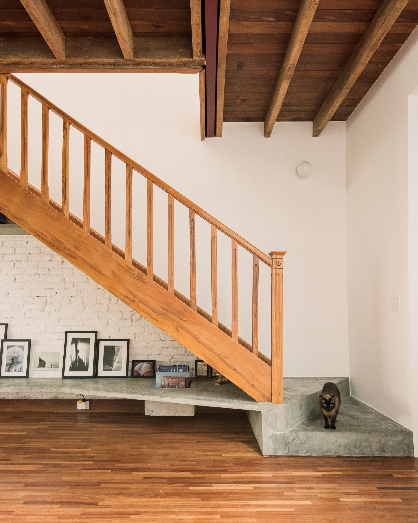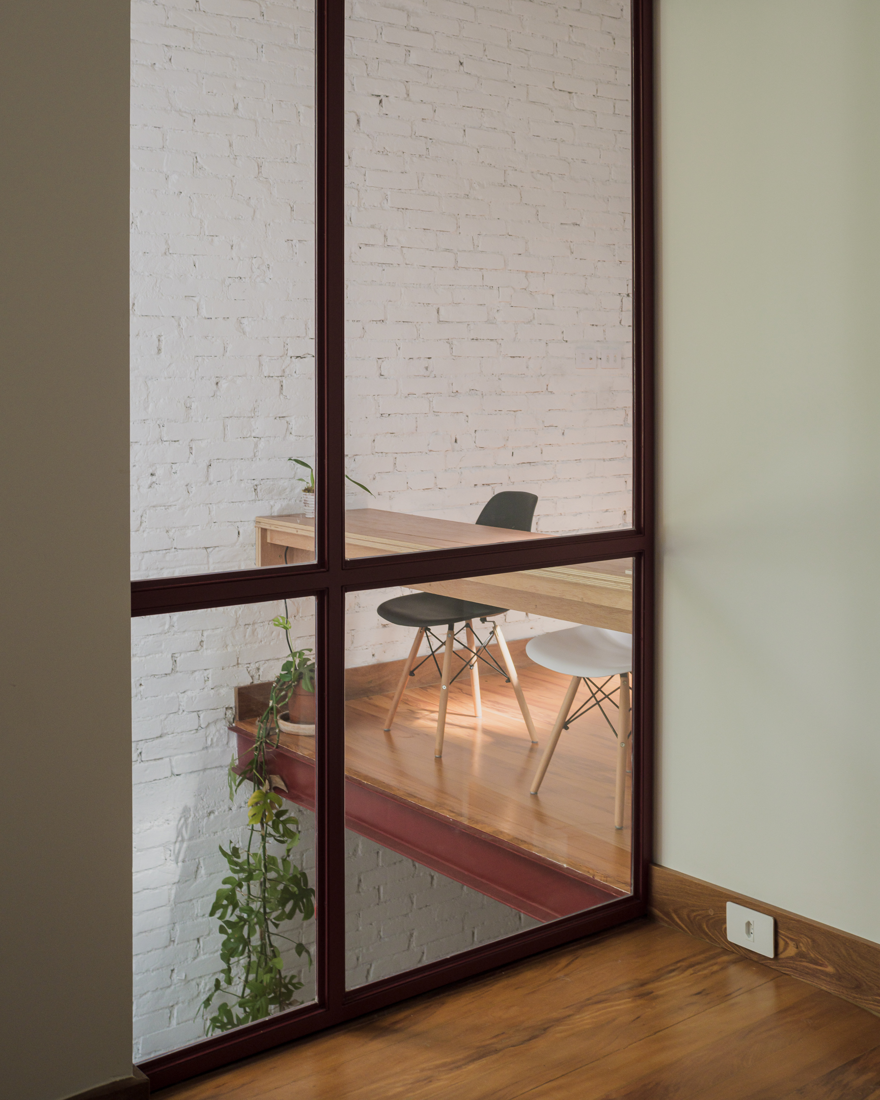 A renovated rowhouse in a central neighbourhood in São Paulo, Brazil opens up the source of the Saracura river, which flows from behind the brick walls into a garden pool. Warm tones and ample rooms make for comfortable and light-filled living spaces.