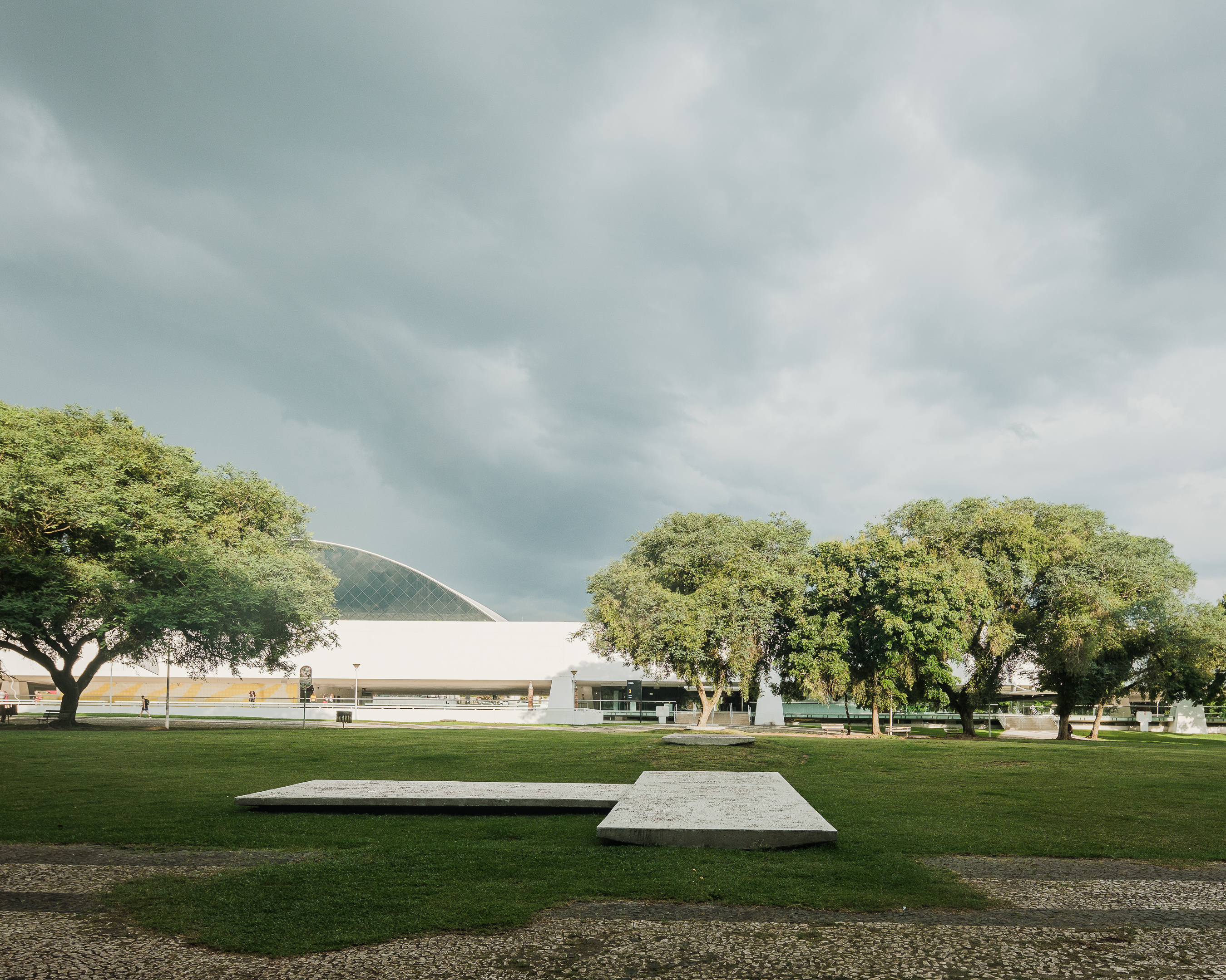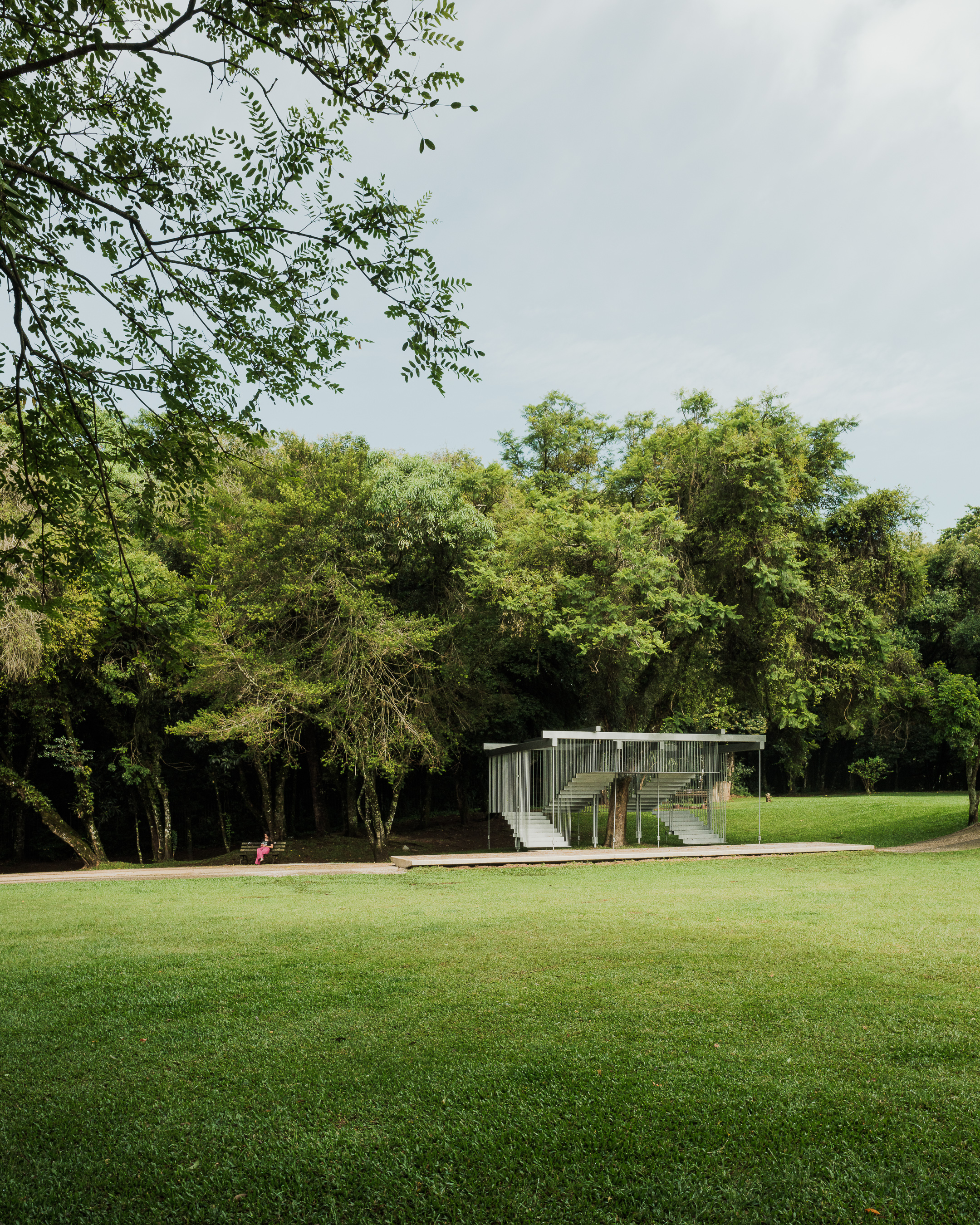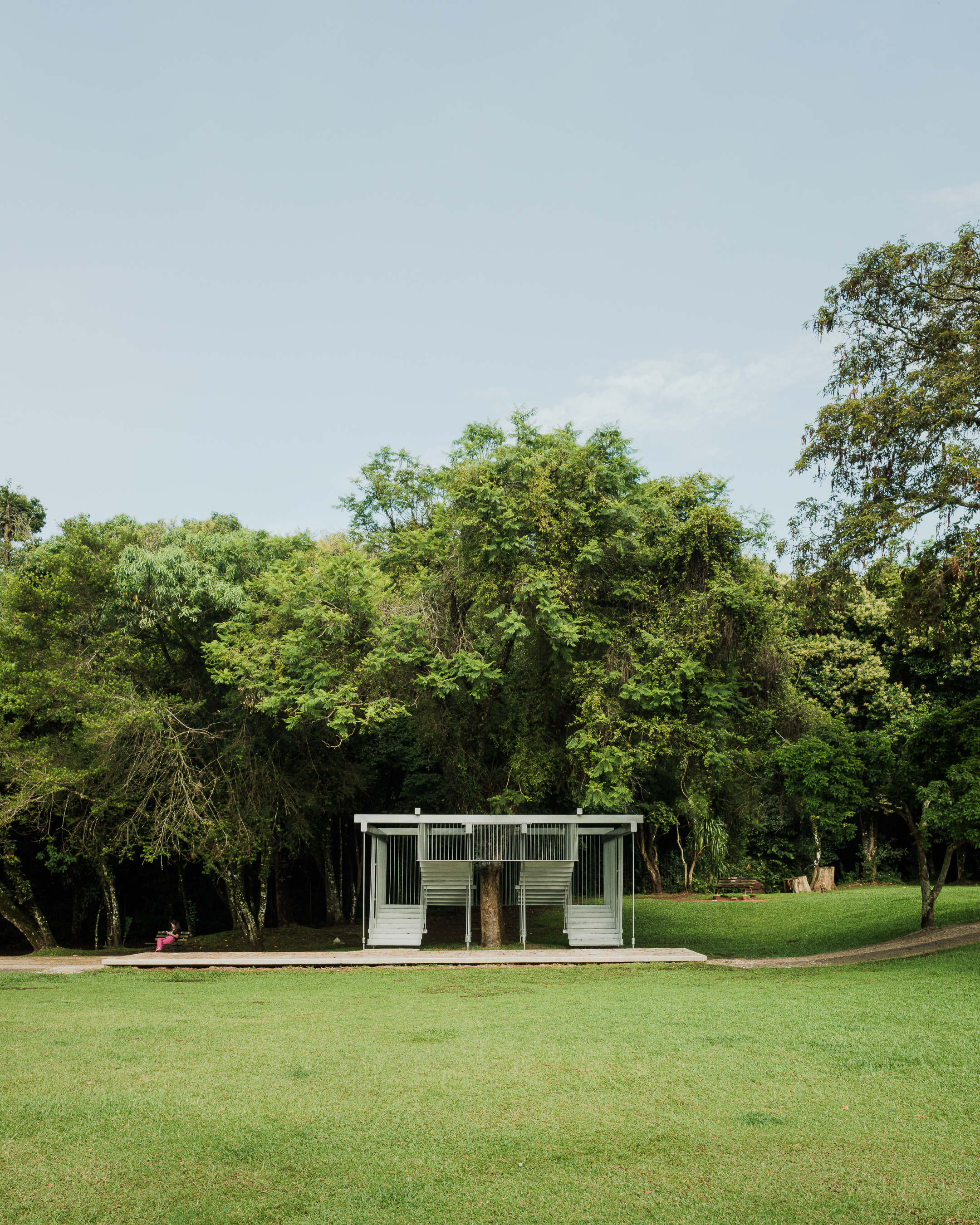 “Semeador” (Sower) and “Ao Redor de uma Árvore” (Around a Tree), by Estúdio Gustavo Utrabo, at the Oscar Niemeyer Museum in Curitiba, Brazil. These works are part of the project “MON without Walls – Artists Conquer the Gardens of MON”, curated by Marc Pottier. 2023.