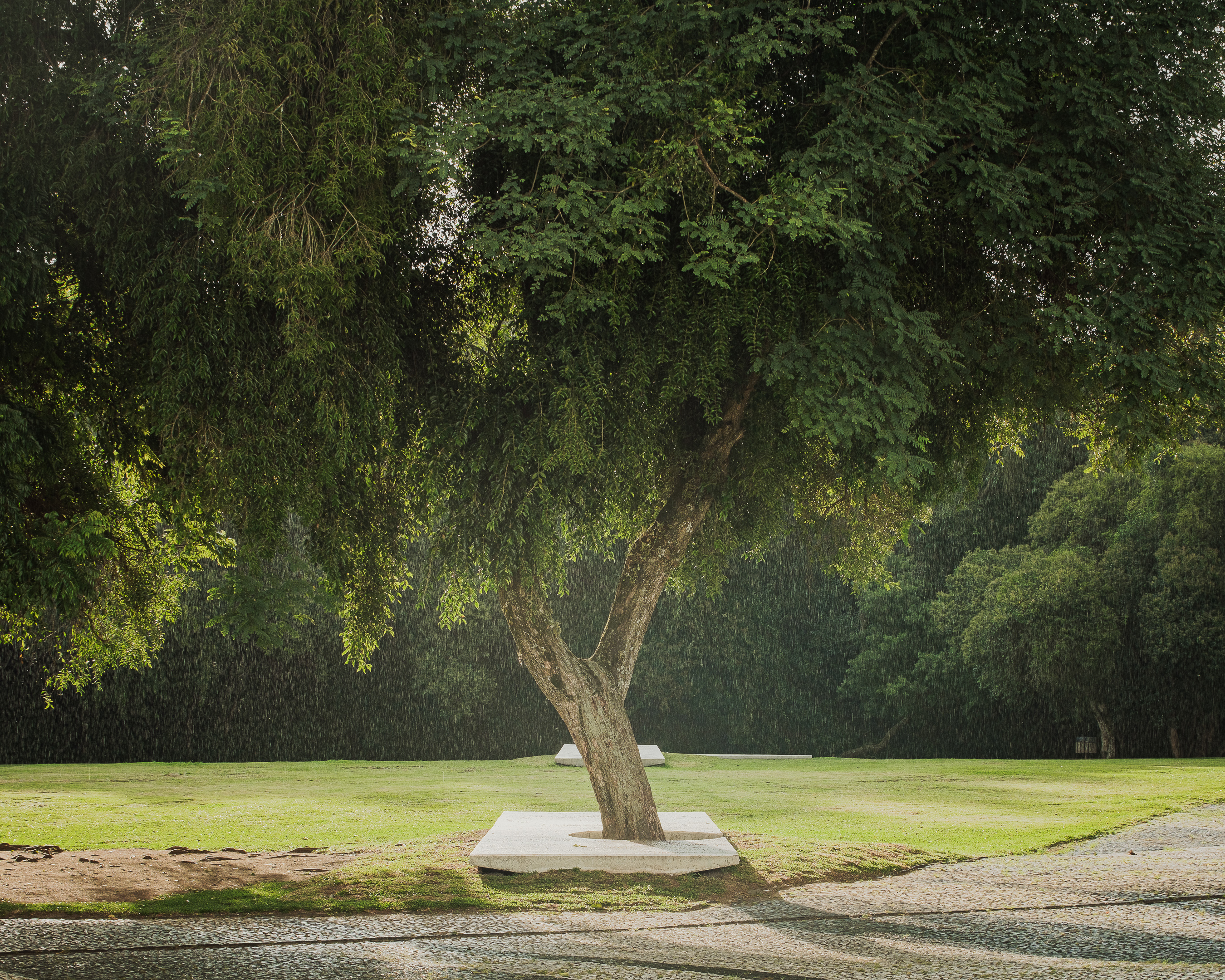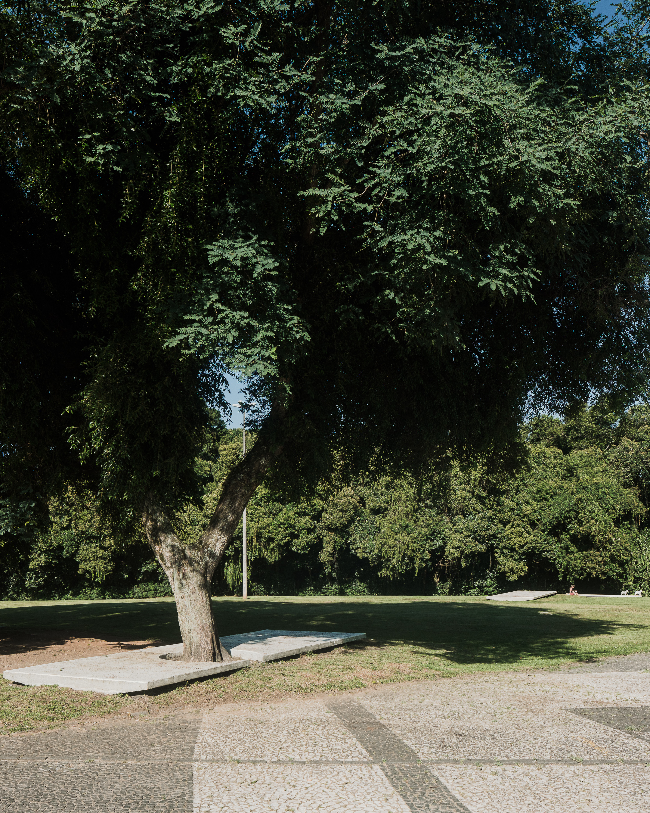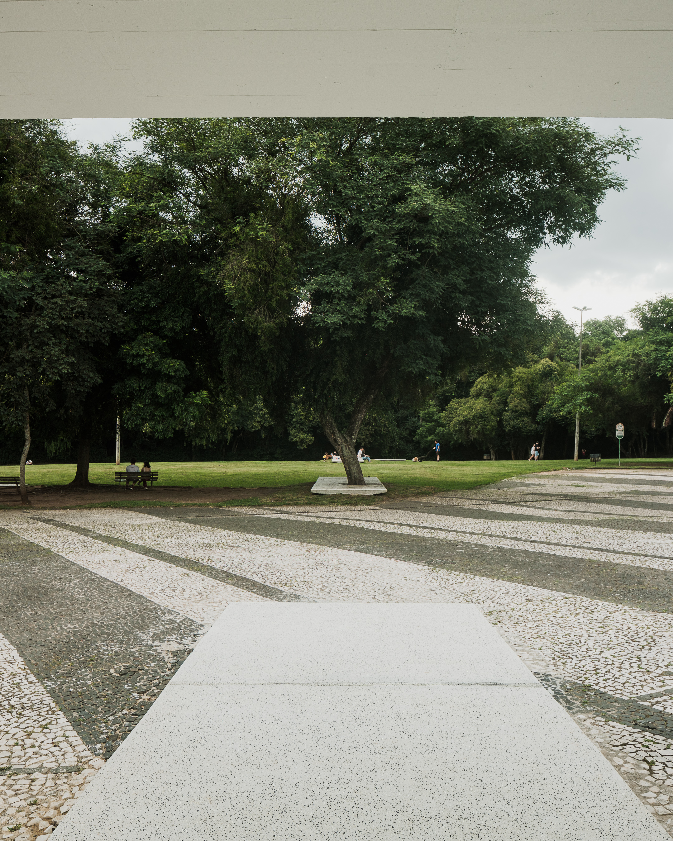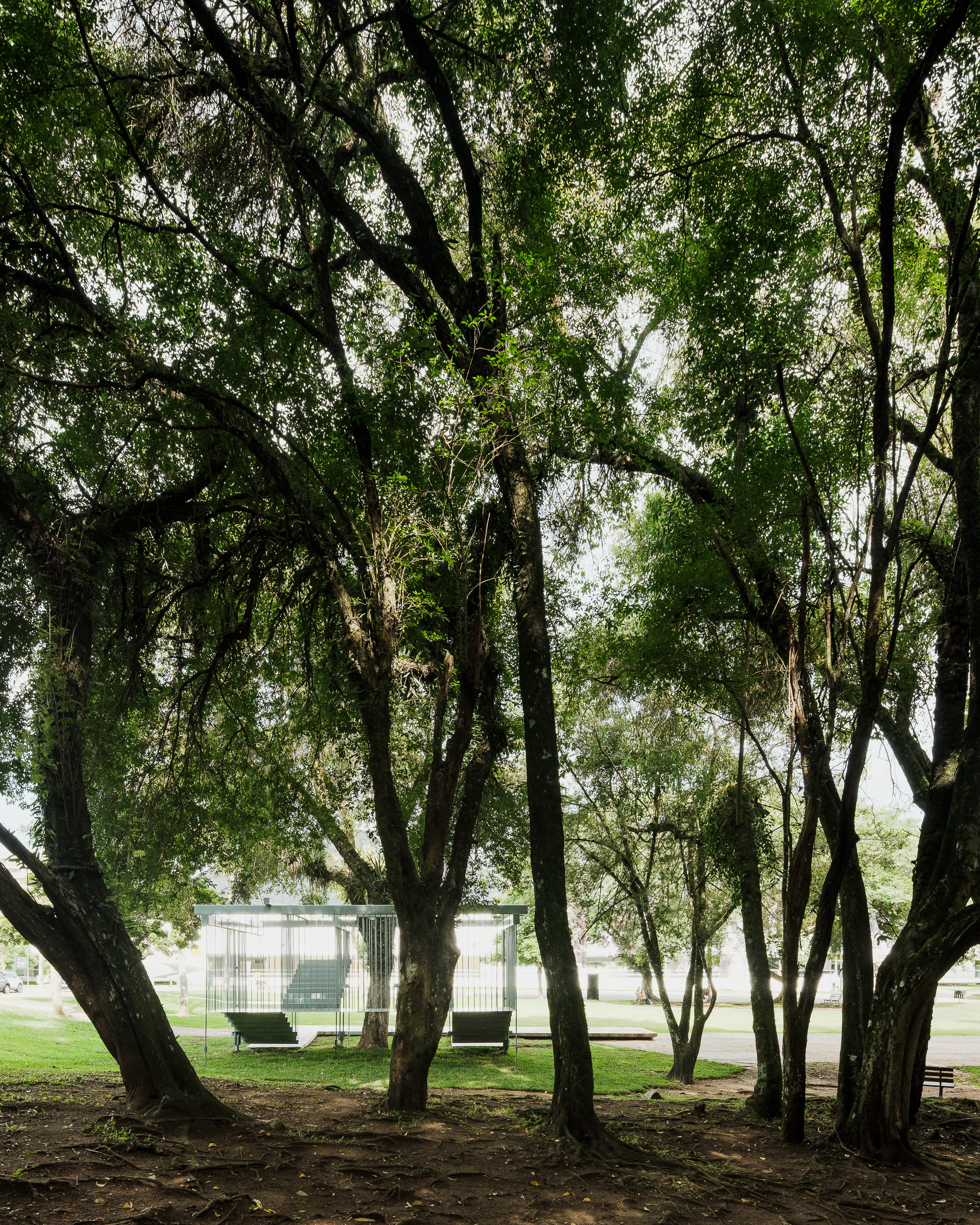 “Semeador” (Sower) and “Ao Redor de uma Árvore” (Around a Tree), by Estúdio Gustavo Utrabo, at the Oscar Niemeyer Museum in Curitiba, Brazil. These works are part of the project “MON without Walls – Artists Conquer the Gardens of MON”, curated by Marc Pottier. 2023.