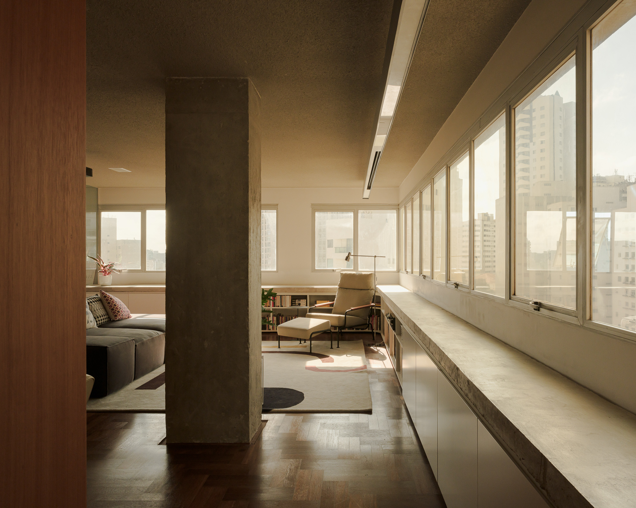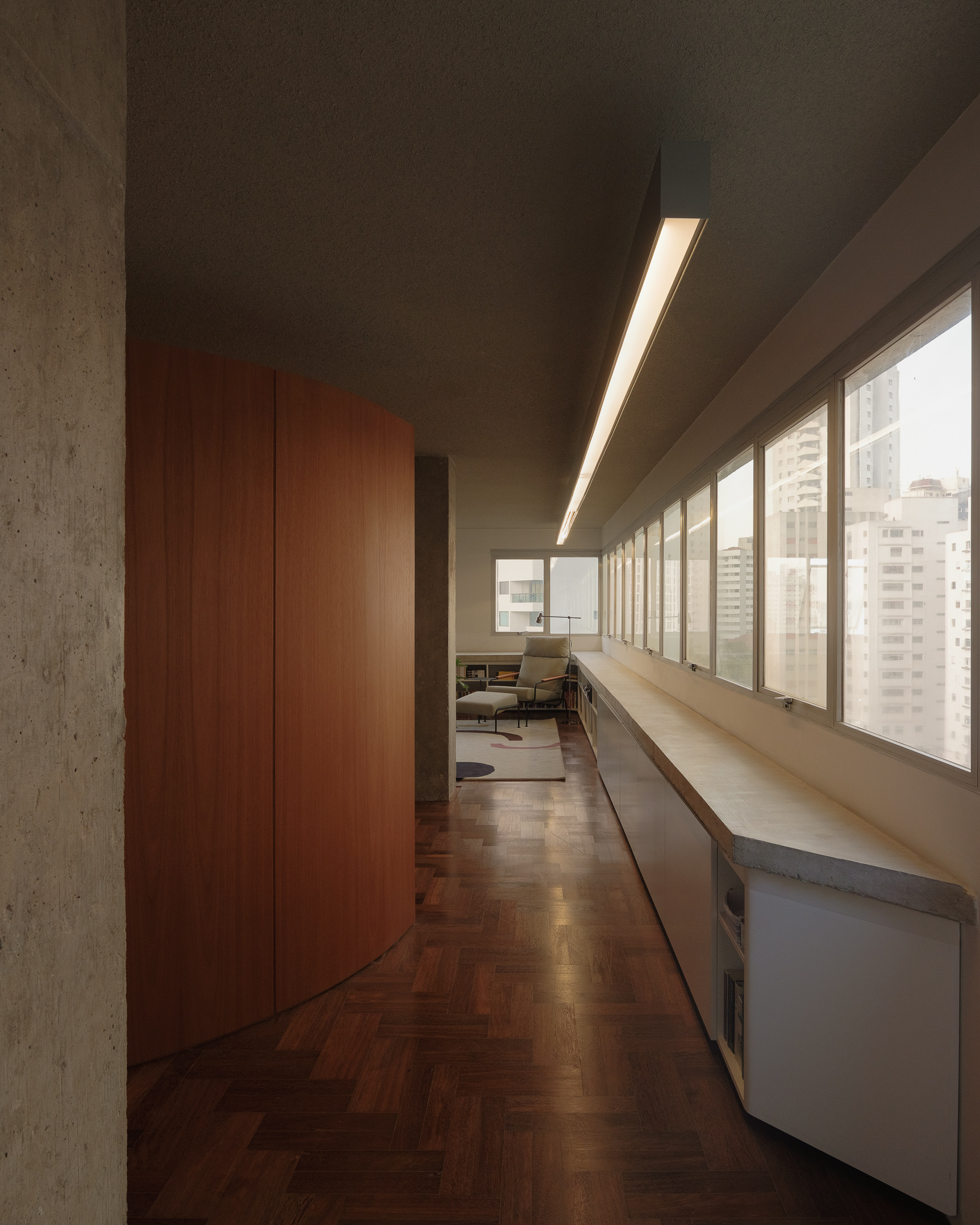 The renovation of an apartment built in the seventies in São Paulo sought to adapt it to the needs of a young family. The original plan by architect Ruy Ohtake was recovered and updated – in order to exacerbate programmatic aspects of modernist living. The materiality of the spaces then received a new proposal.