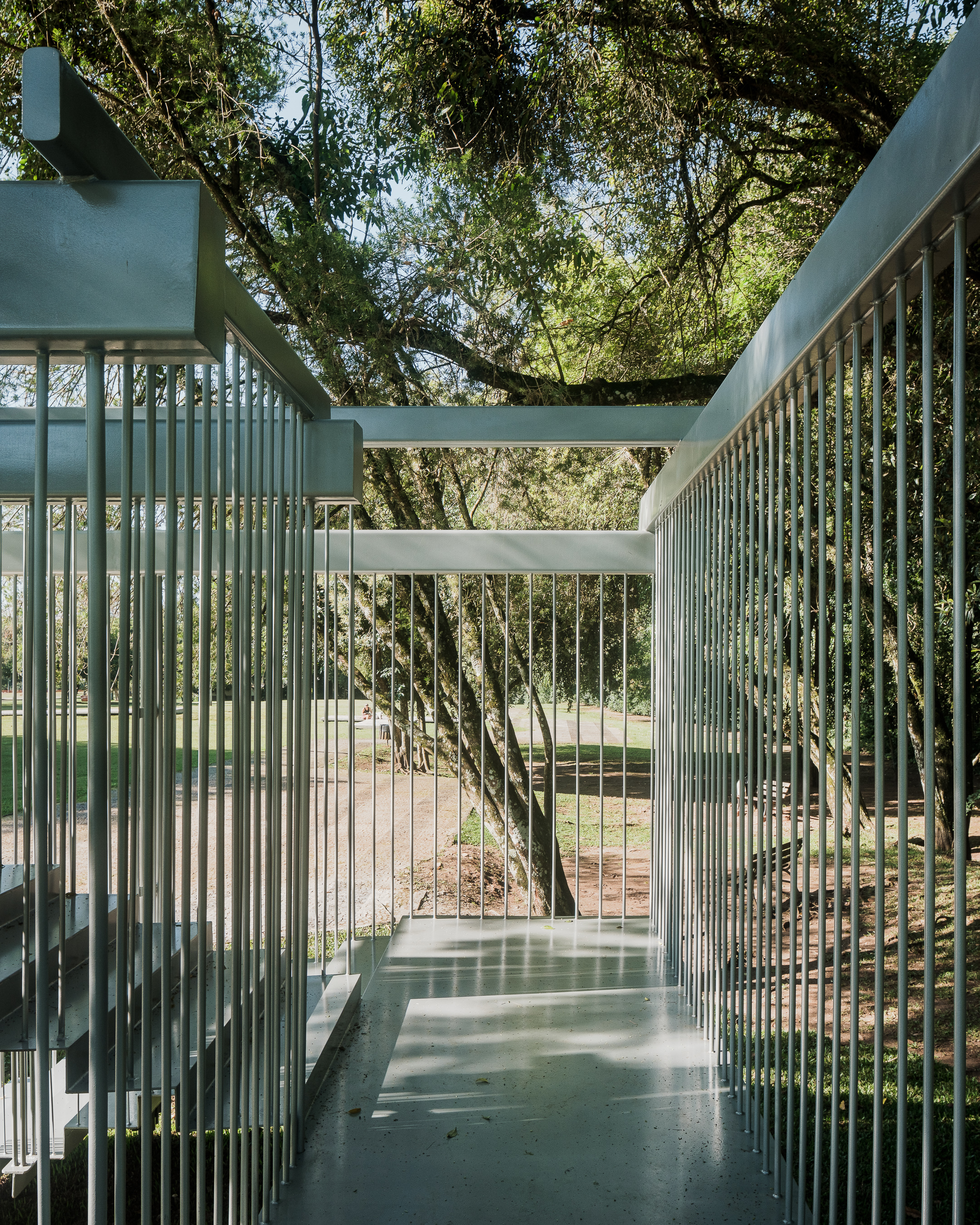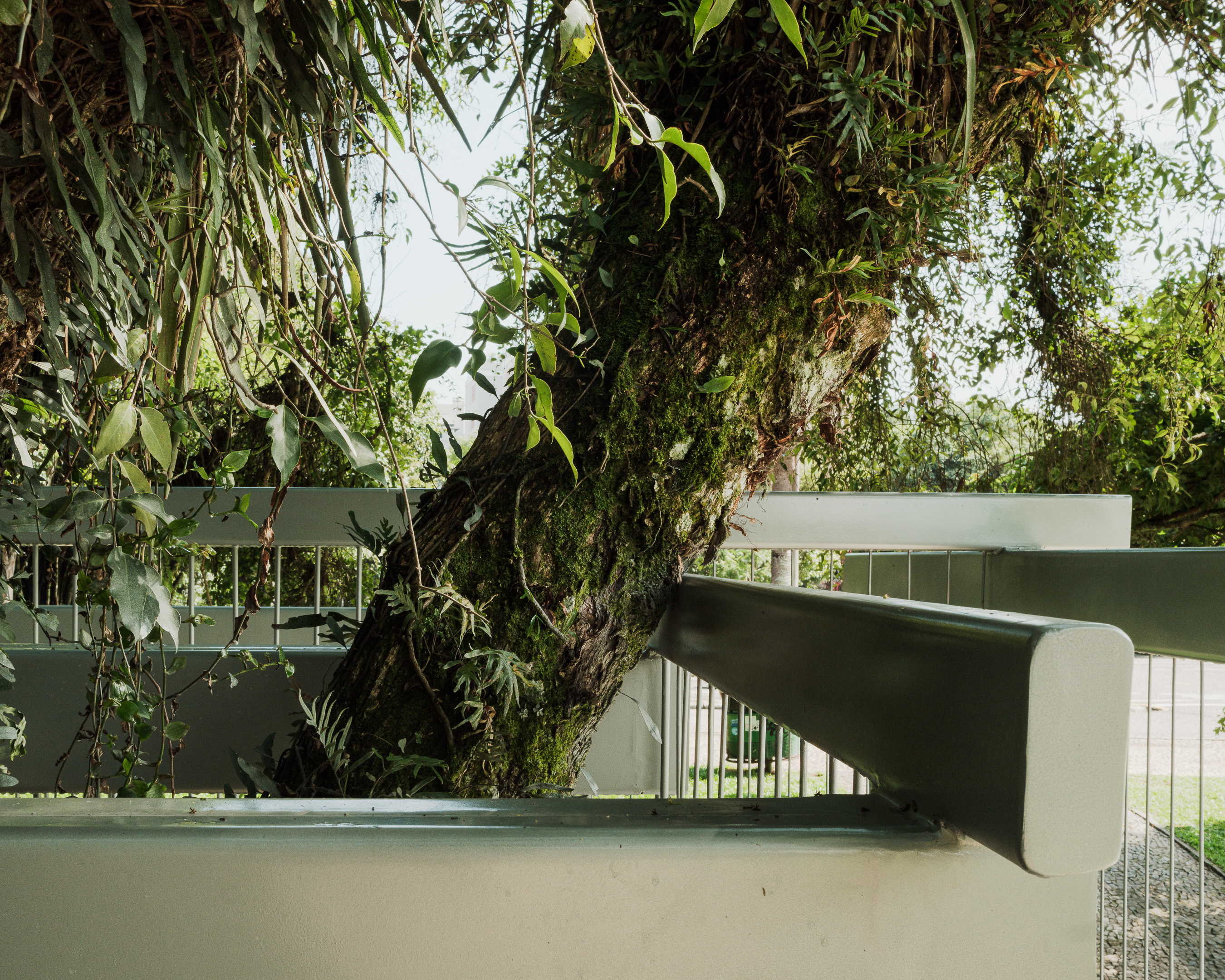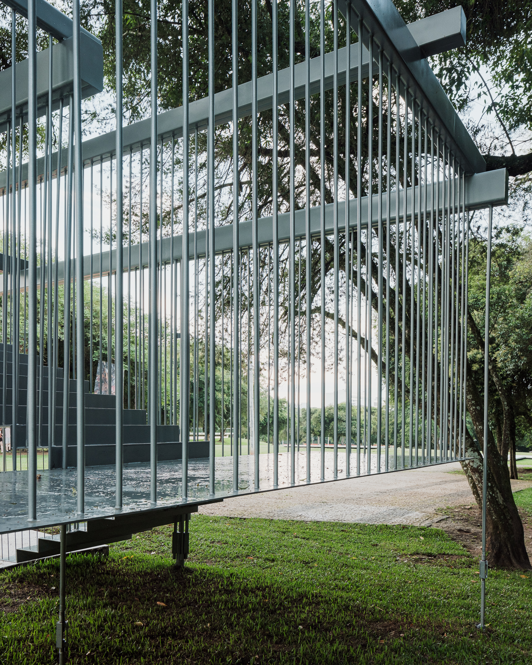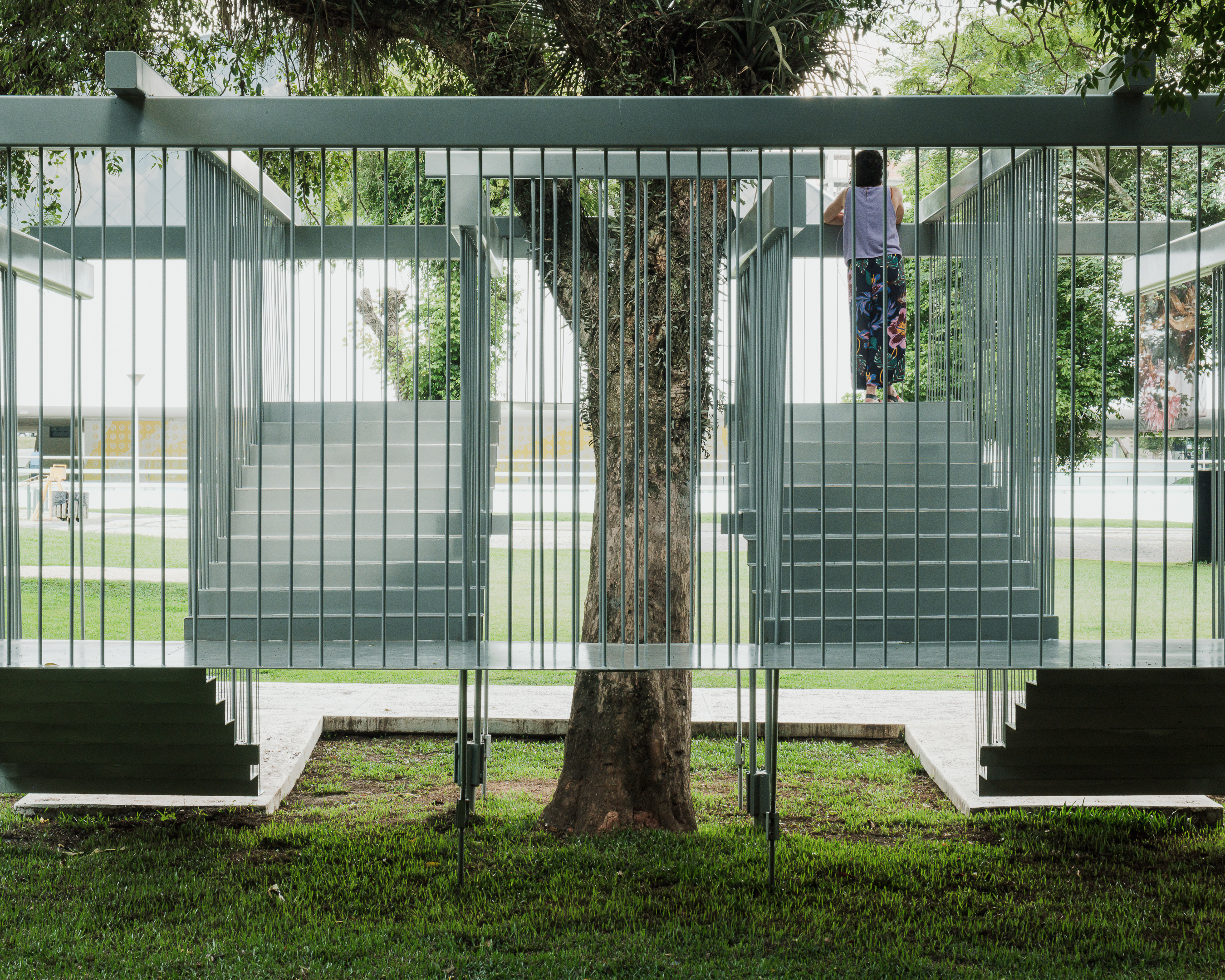 "Semeador” (Sower) and “Ao Redor de uma Árvore” (Around a Tree), by Estúdio Gustavo Utrabo, at the Oscar Niemeyer Museum in Curitiba, Brazil. These works are part of the project “MON without Walls – Artists Conquer the Gardens of MON”, curated by Marc Pottier. 2023.
